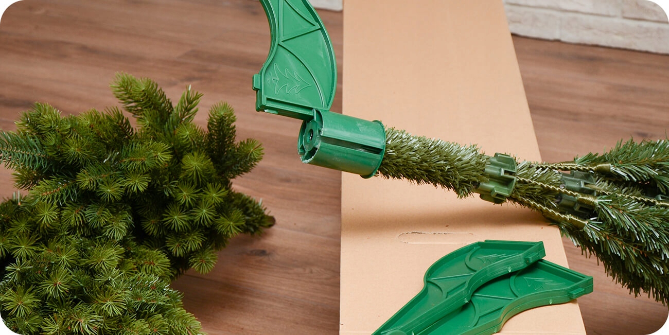 З міркувань безпеки під час транспортування основа ялинки розбирається та потребує ручного складання.