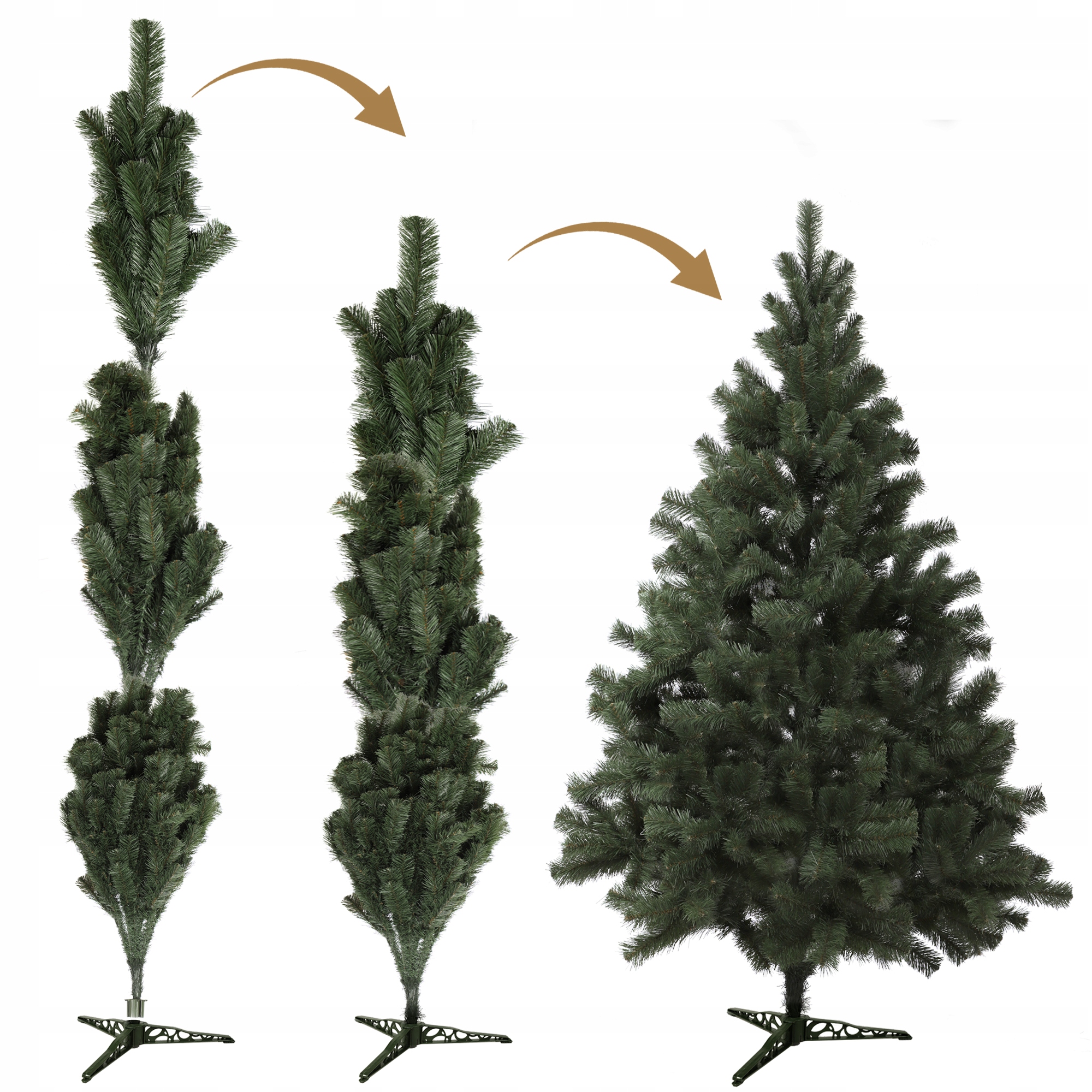 ✅Складіть гілки, потягнувши їх угору до стовбура ялинки. Завжди починайте складаючись із верхніх гілок.