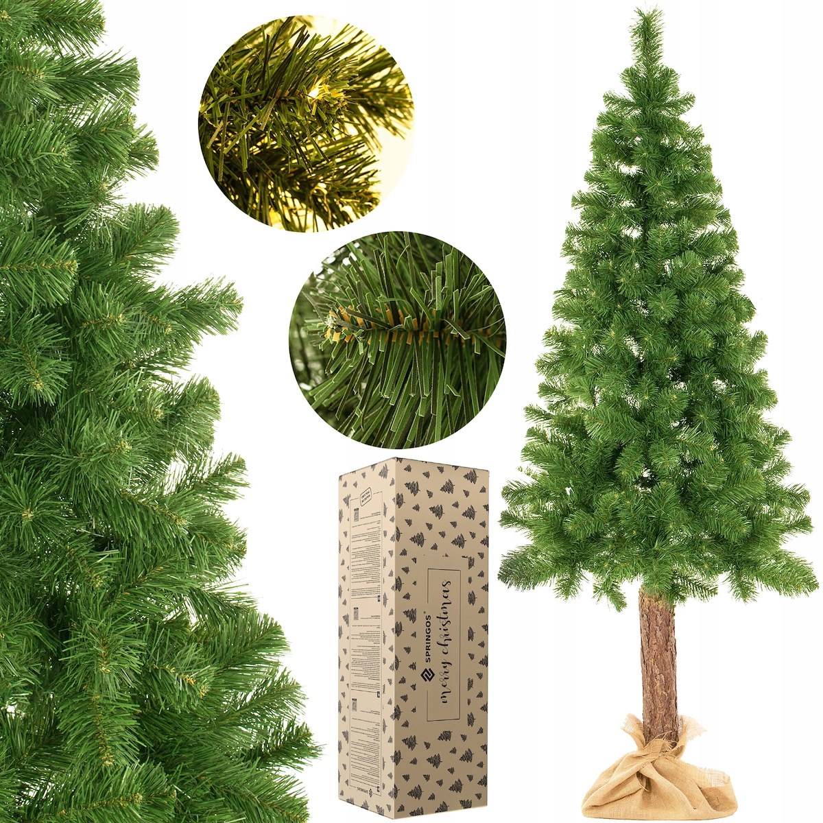 ЯЛИНКА ШТУЧНА НА СТВОЛІ СОСНИ, зелена, натуральна, ВЕЛИКА, ЩІЛЬНА, 160см, ПРЕМІУМ