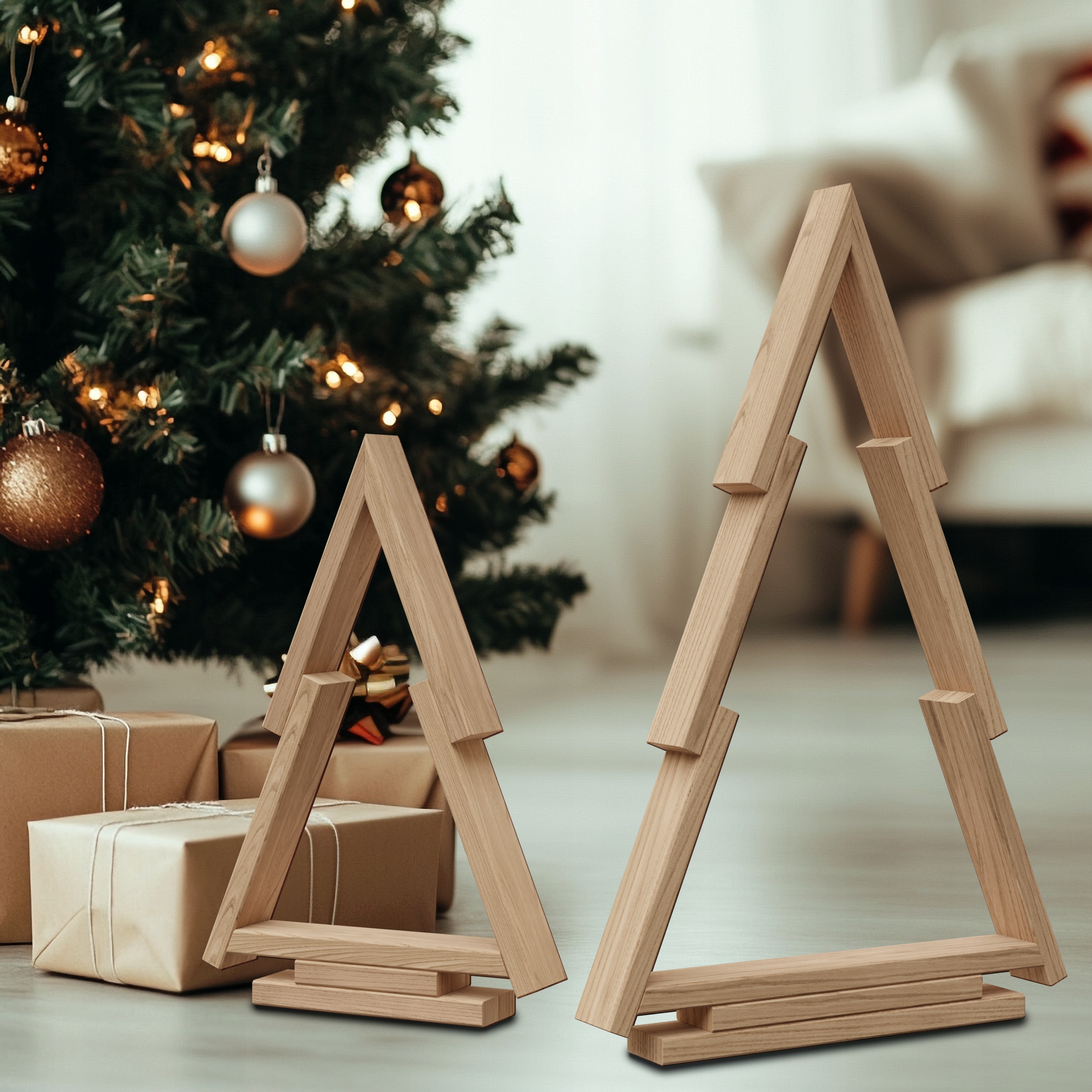 Менший розмір ідеально підходить для вузьких полиць або підвіконь, а більша ялинка може додати характерний акцент у будь-якій кімнаті.