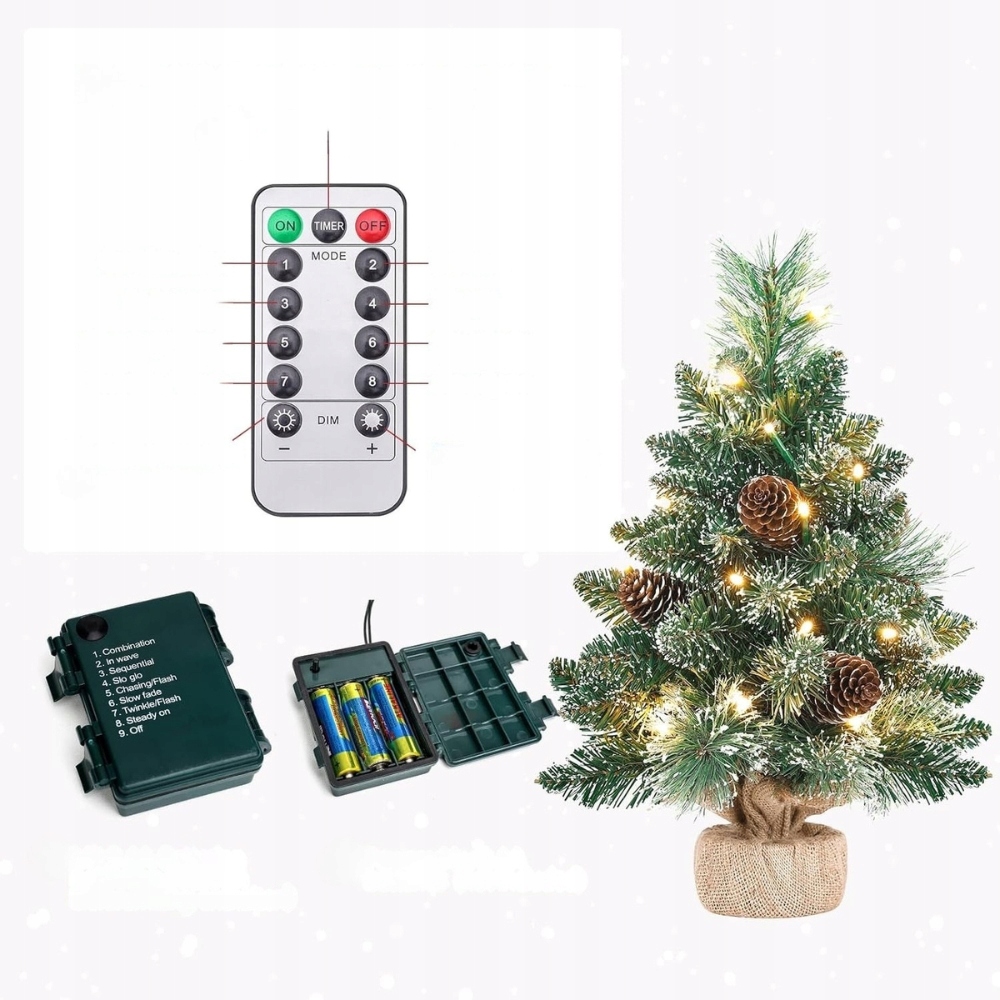 Набір оснащено 20 світлодіодами, які випромінюють тепле біле світло, що створює святкову атмосферу. Підсвічування працює від 3-х батарейок АА, що робить ялинку зручною у використанні та не вимагає підключення до електрики.