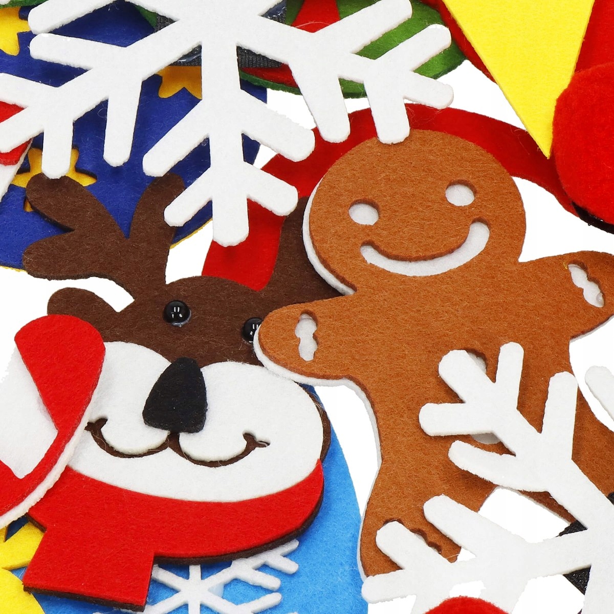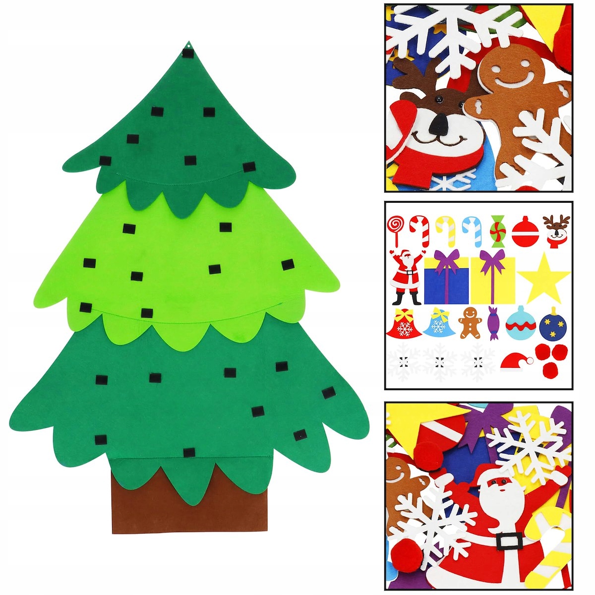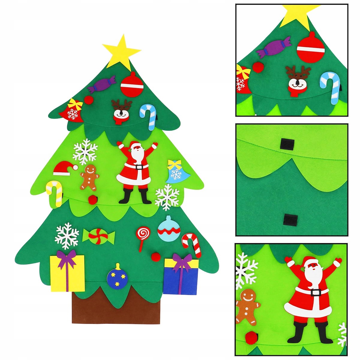 Прикріплені до ялинки фетрові прикраси легко прикріпити до неї -вони оснащені липучками . Кожен елемент м'який і приємний на дотик, викликає різдвяні асоціації, має цікаву форму і яскраві кольори. Це справжня сенсорна розвага!