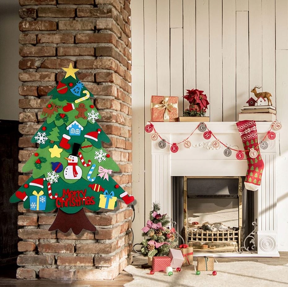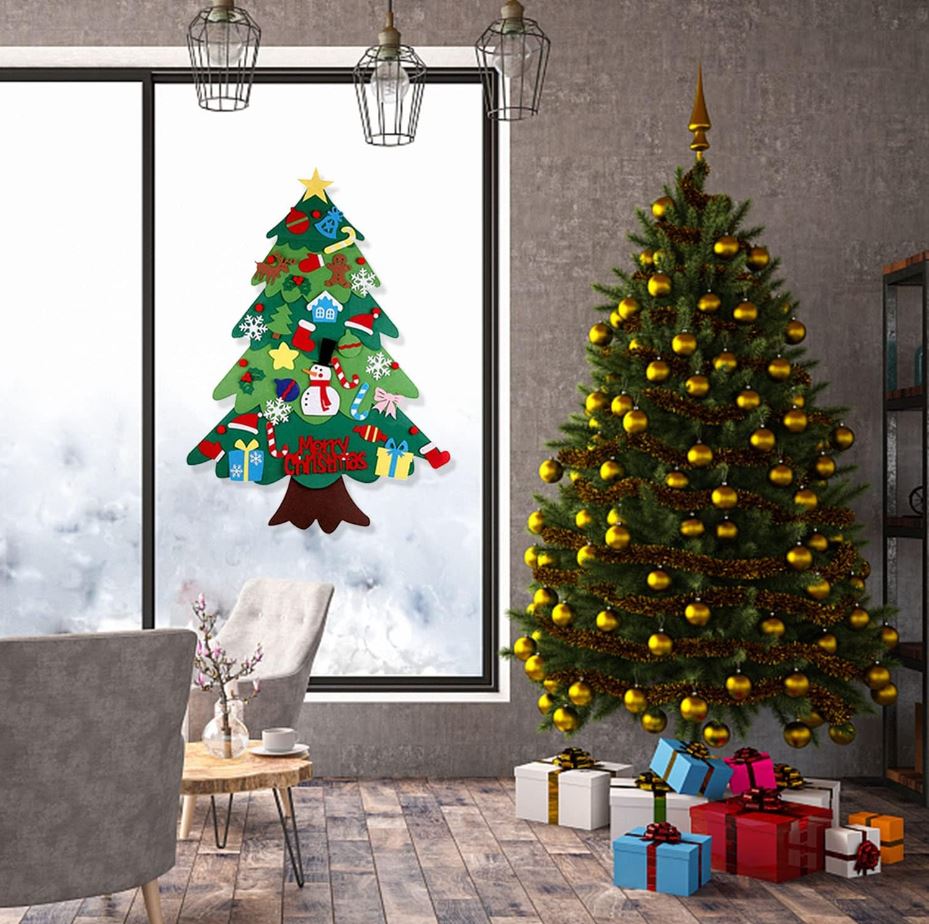 Ялинка з фетру легка, її можна повісити на стіну чи двері, що робить її ідеальною прикрасою навіть у невеликих приміщеннях. Виготовлений із безпечних матеріалів, він підходить навіть для найменших дітей.
