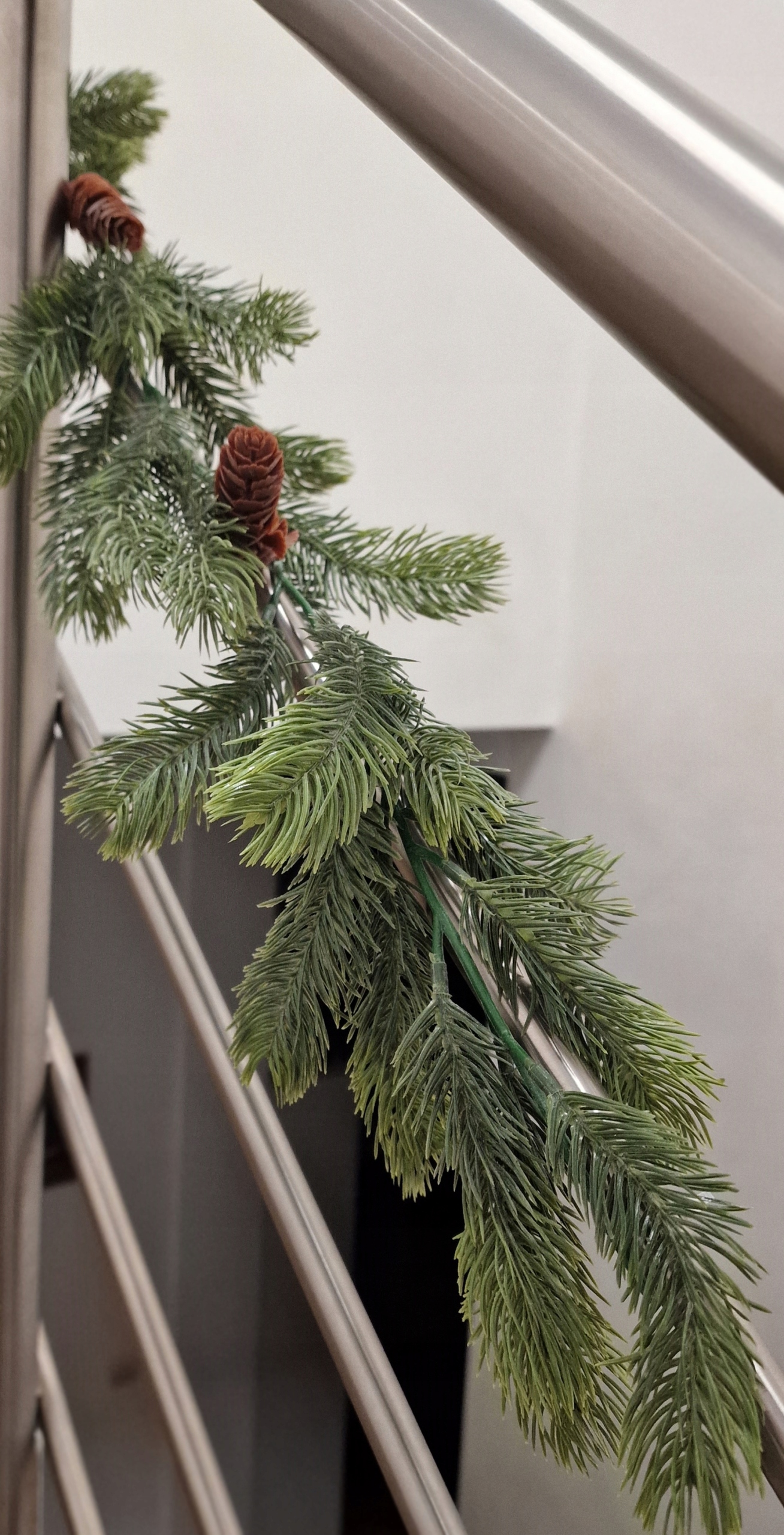 Ціна вказана за одну гірлянду довжиною 180 см, яка складається приблизно з 68 штук гілочок і близько 6 штук шишок.