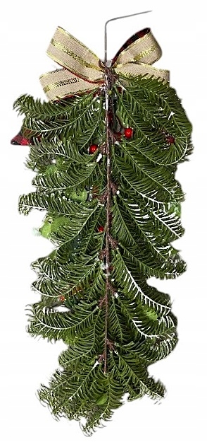 Ялинкова подовжена прикраса 21116 55х25см бант горобина шишки РІЗДВО