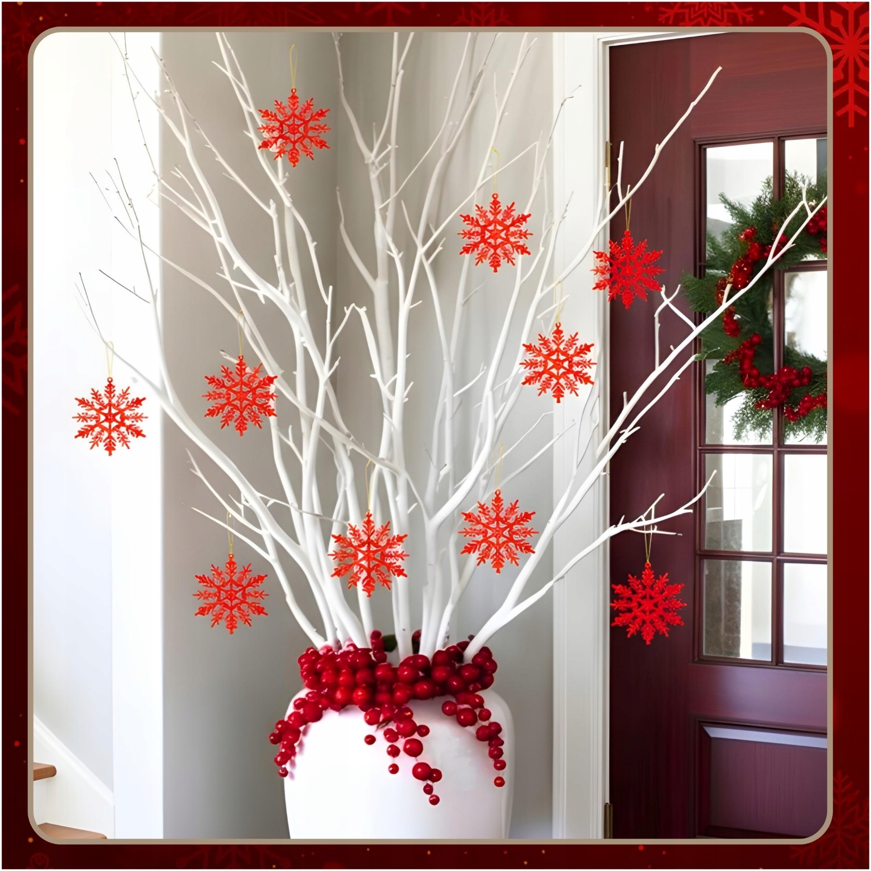 ✔️ У різдвяних вінках і столових прикрасах Завдяки невеликому розміру, естетичній формі та блискучому покриттю сніжинки чудово поєднуються з гілочками, свічками чи дрібничками.