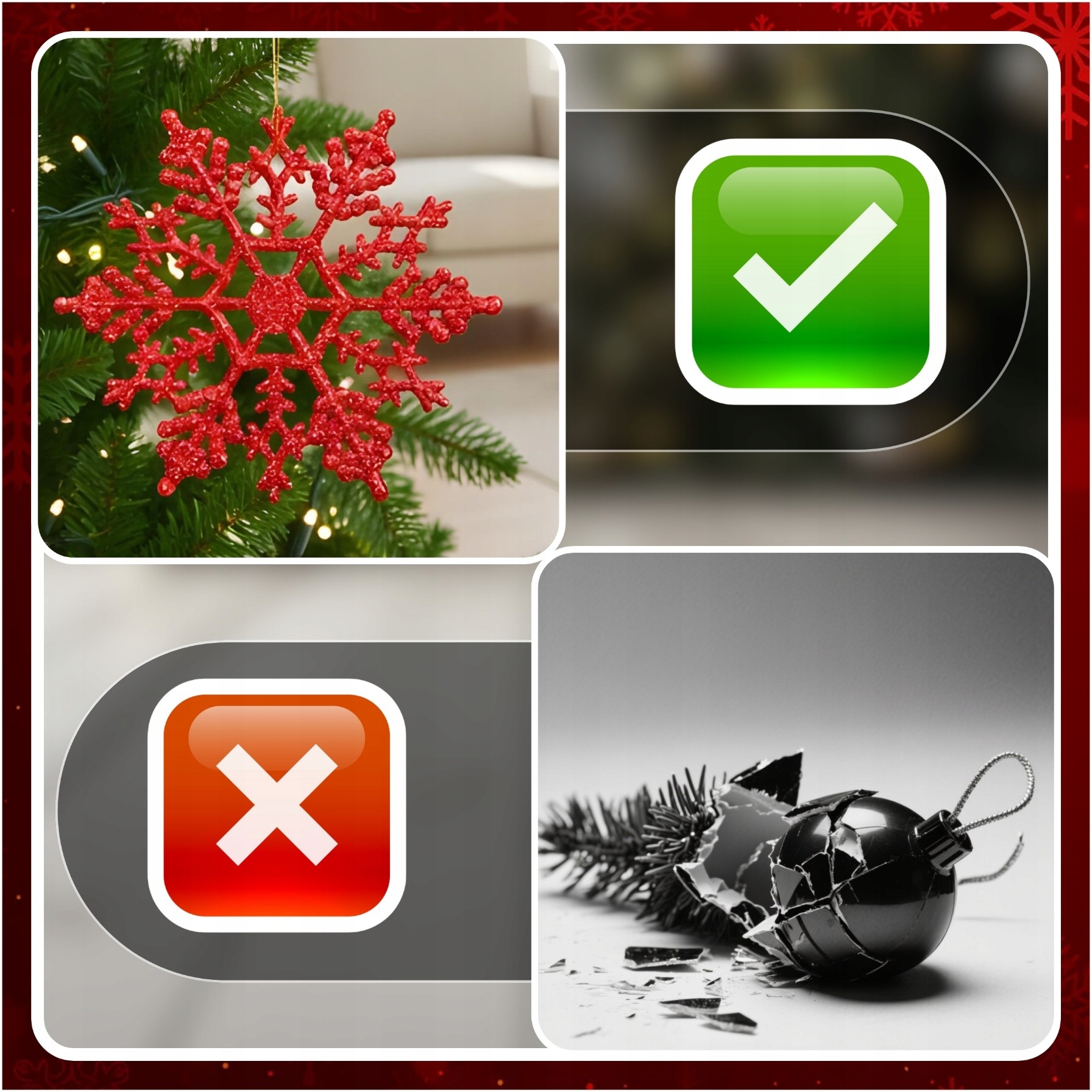 Вам набридли нудні, повторювані прикраси, які не привертають увагу? ? Обирайте наші червоні підвіски-сніжинки, які миттєво перетворять вашу ялинку! Додайте неповторного блиску, елегантності та святкової атмосфери – порадуйте домочадців та гостей у святковий сезон! ✨