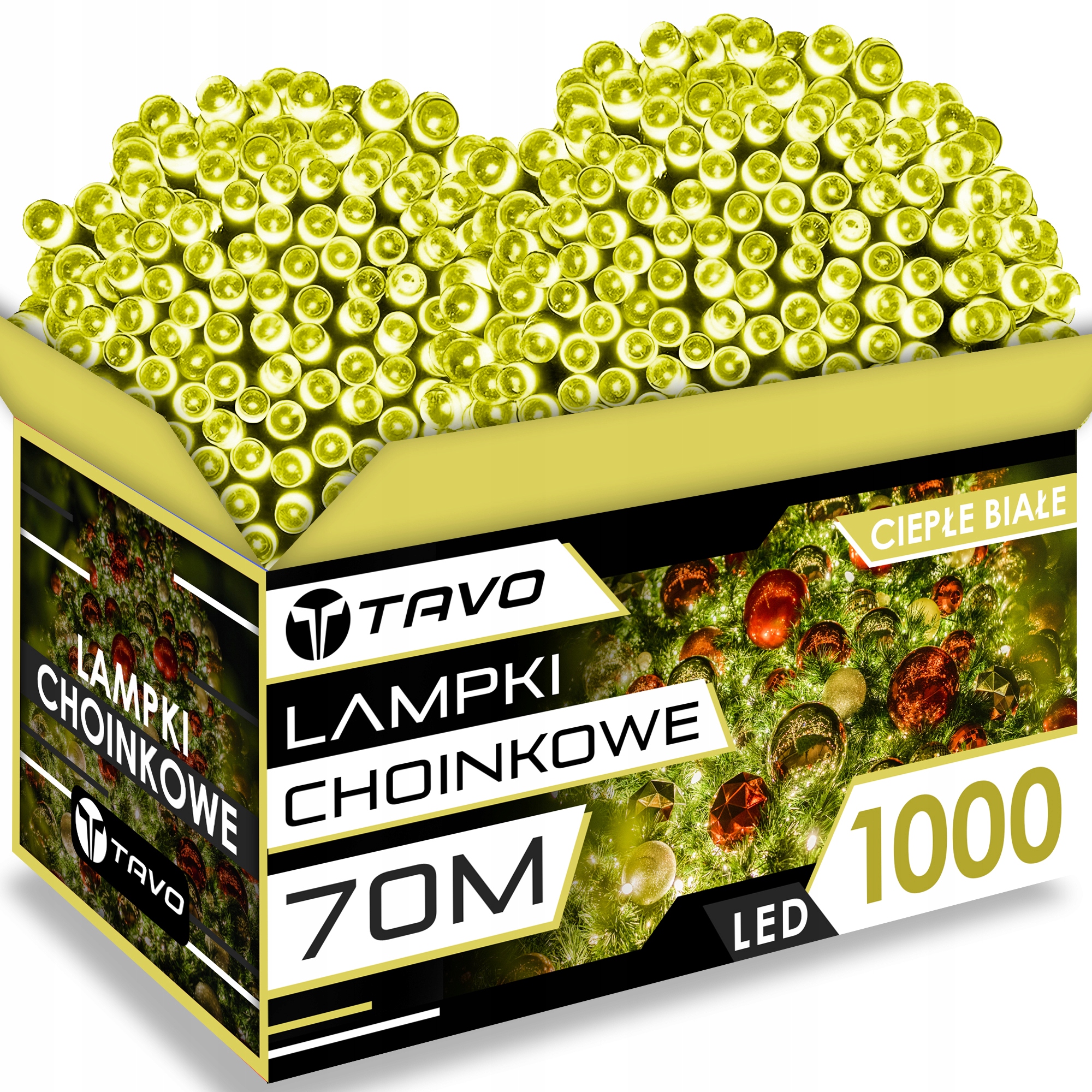 Ялинкові світильники 1000 LED Білі Теплі 70M Програматор Світло Ланцюг