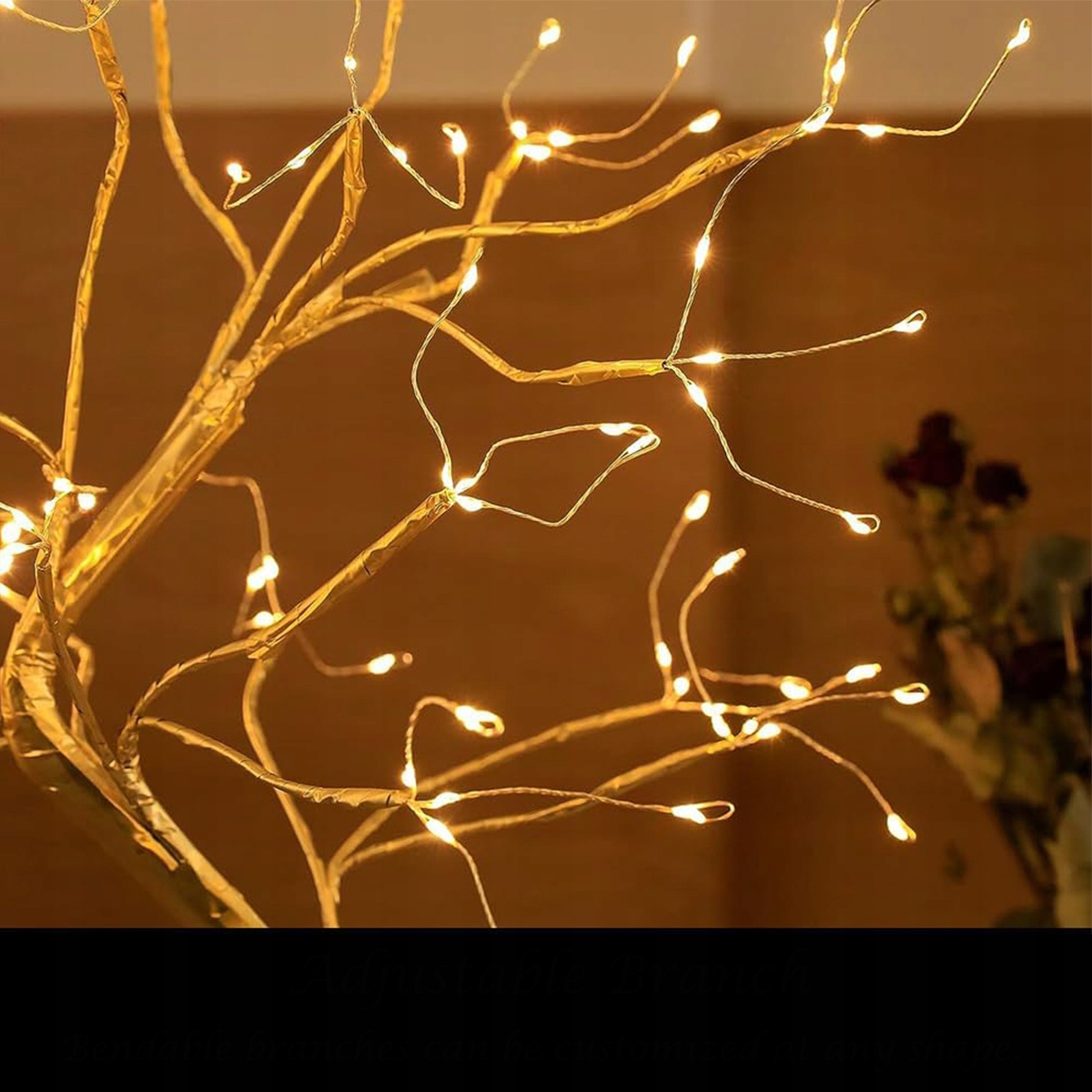 Набір містить 108 світлодіодів із постійним і блимаючим режимами, які є безпечними, енергозберігаючими та не нагріваються після тривалого використання. Світлодіодна ялинка для приміщень виготовлена з вишуканого натурального пакувального матеріалу, схожого на дерево, а золоті гілки є гнучкими та досить гнучкими, щоб задовольнити ваші потреби у виготовленні своїми руками.