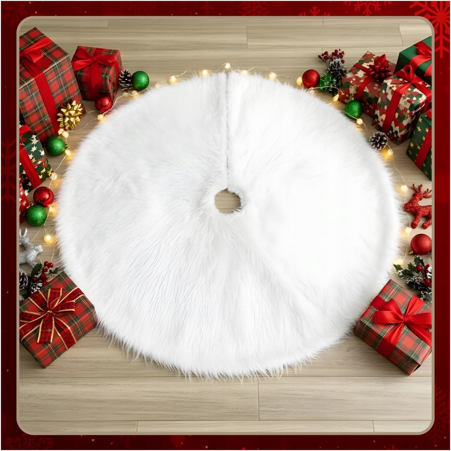 ✅М’яке хутро ✅Новорічний дизайн ✅Великий діаметр 90 см ✅Легке чищення ✅Ідеально підходить для подарунків ✅Підходить до будь-якої ялинки