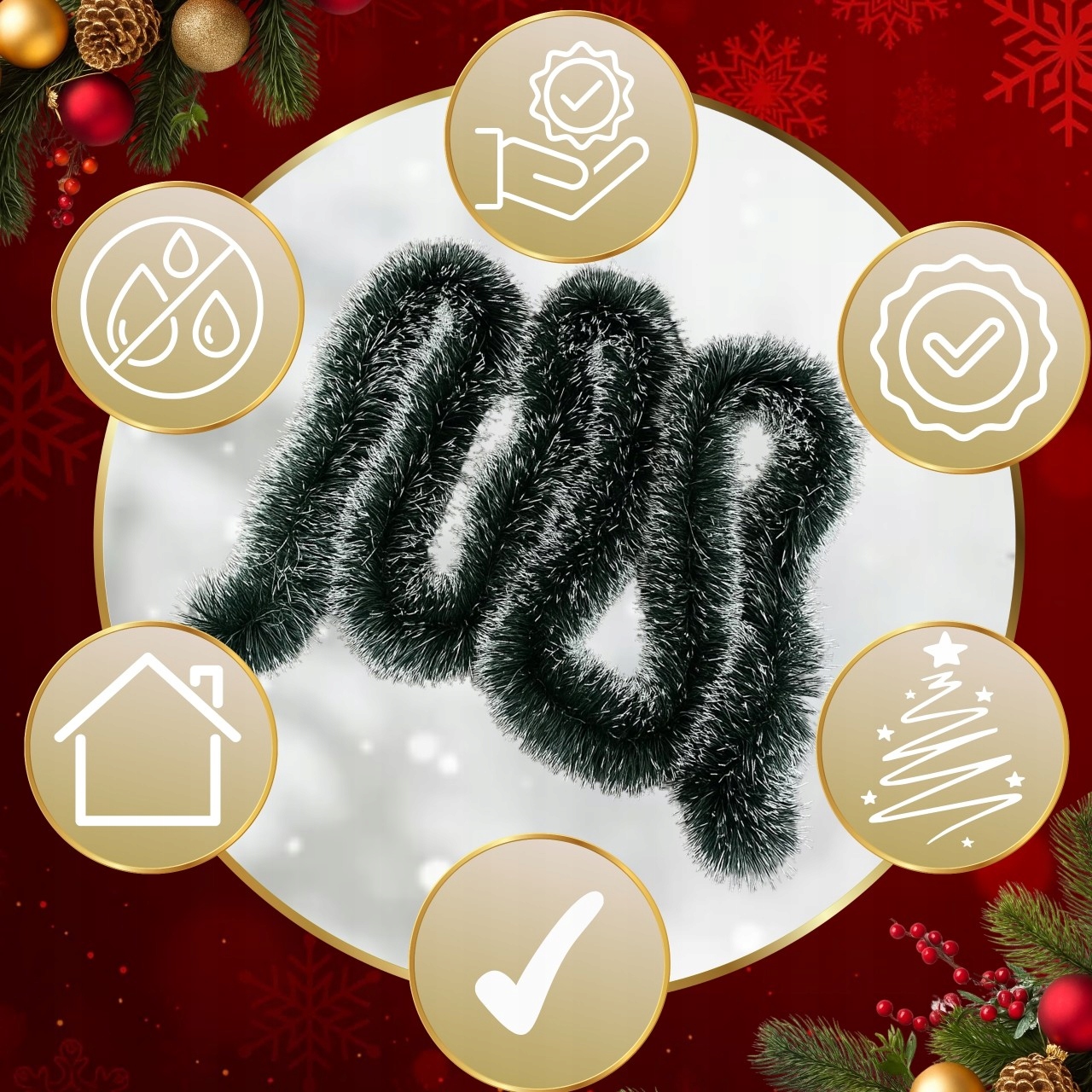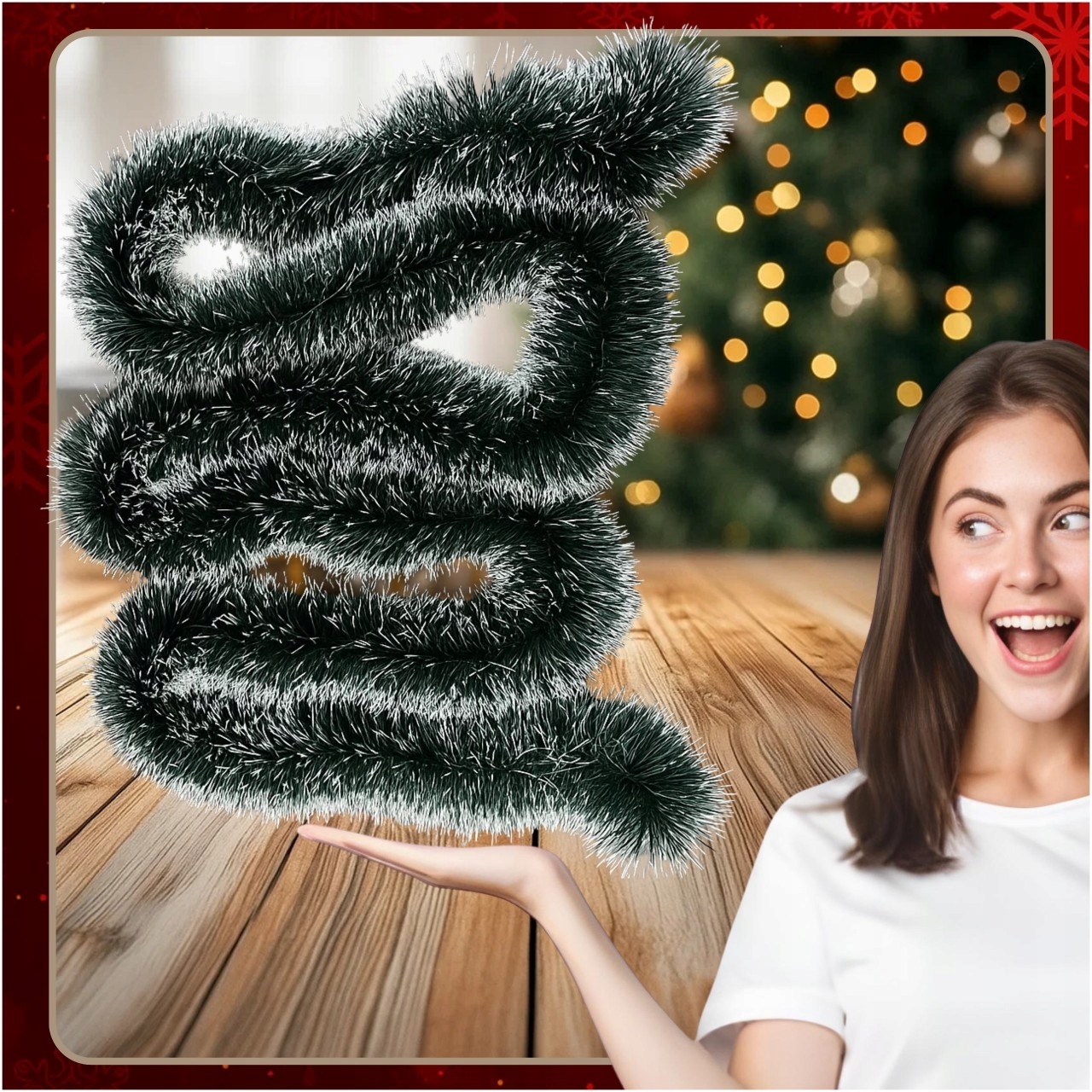 - ✅ Гнучкість: легко формувати та обертати навколо ялинки, балюстрад або поручні,