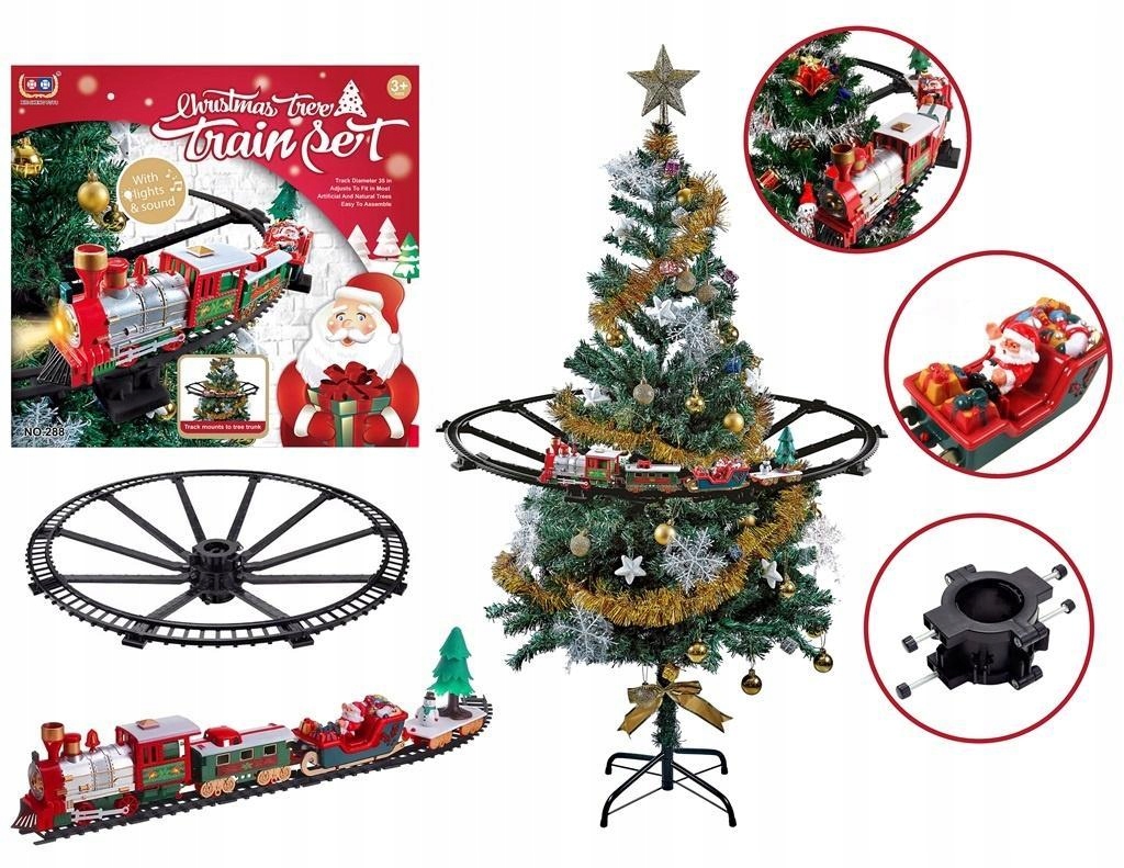 Цей барвистий 3-вагонний локомотив не просто бігає навколо ялинки на рівні землі. Доріжку також можна закріпити по периметру ялинки, що дозволить різдвяному потягу рухатися на великій висоті. Це здивує та посвітить очі не лише наймолодших. Все це доповнено новорічною упаковкою.