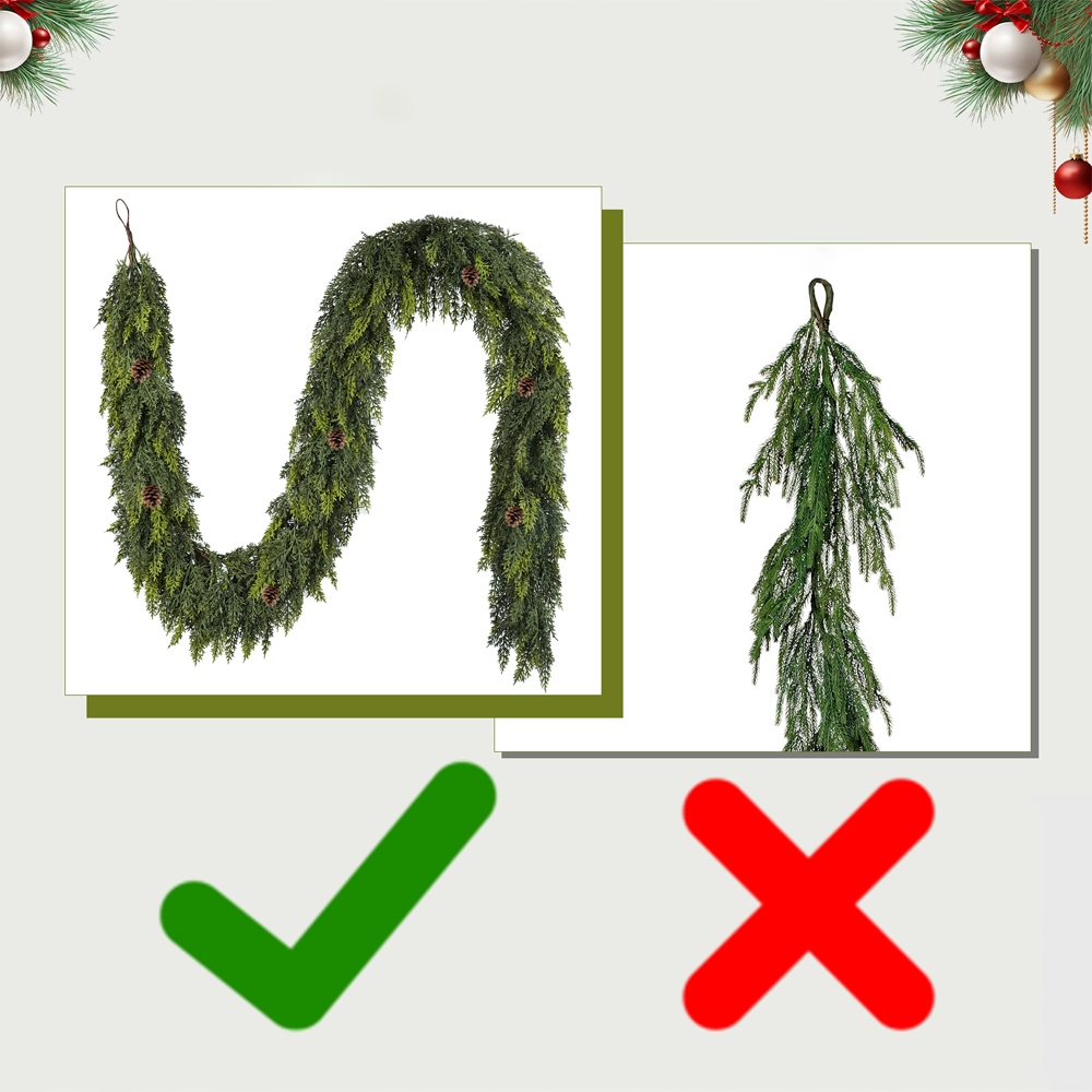 Цей елегантний різдвяний вінок виготовлено з високоякісного поліетиленового матеріалу, який ідеально імітує природний вигляд і відчуття гілок кедра. Завдяки 168 гілочкам і 7 додатковим шишкам вінок надзвичайно щільний і насичений - у 1,5 рази щільніший, ніж у багатьох інших доступних продуктів! Ідеально підходить для того, щоб повісити на двері, біля каміна чи на сходах.