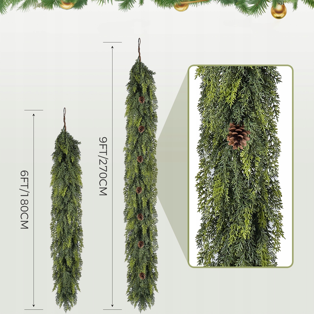 ⭐ДЕКОРАТИВНИЙ РІЗДВЯНИЙ ВІНОК З ШИШКАМИ, 1,8 М (6 ФУТІВ)