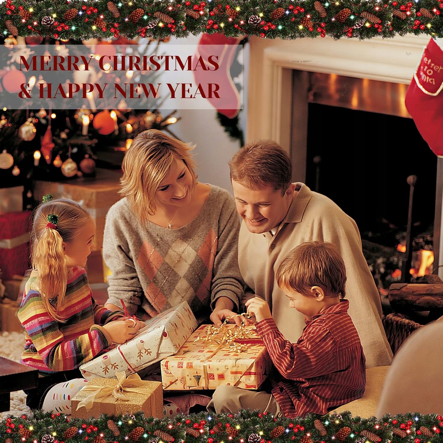 - Декоративні елементи: шишки, горобина, різнокольорові вогники