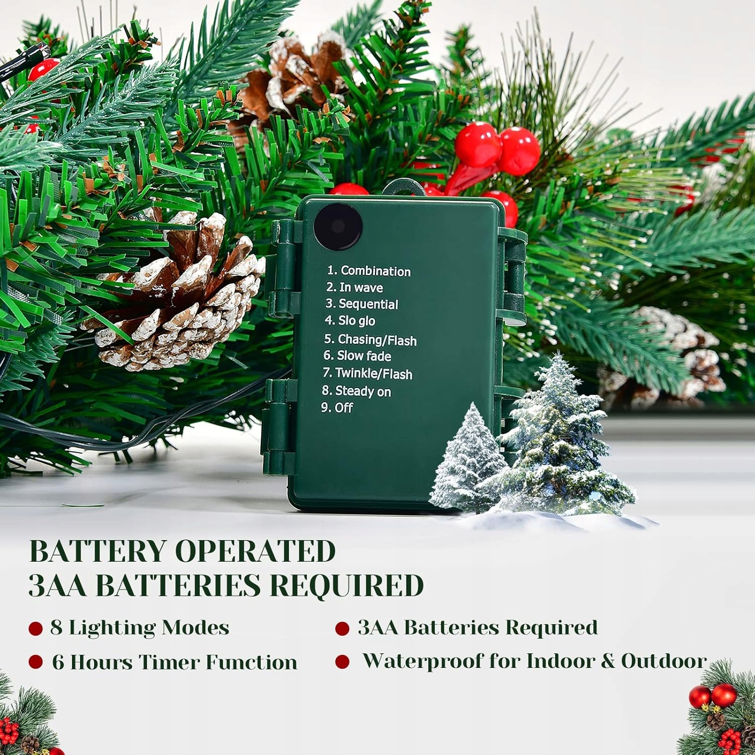З цією новорічною гірляндою розміром 220 см з вогнями, шишками та горобиною ви створите вдома неповторну різдвяну атмосферу, яка зачарує всю родину та гостей.