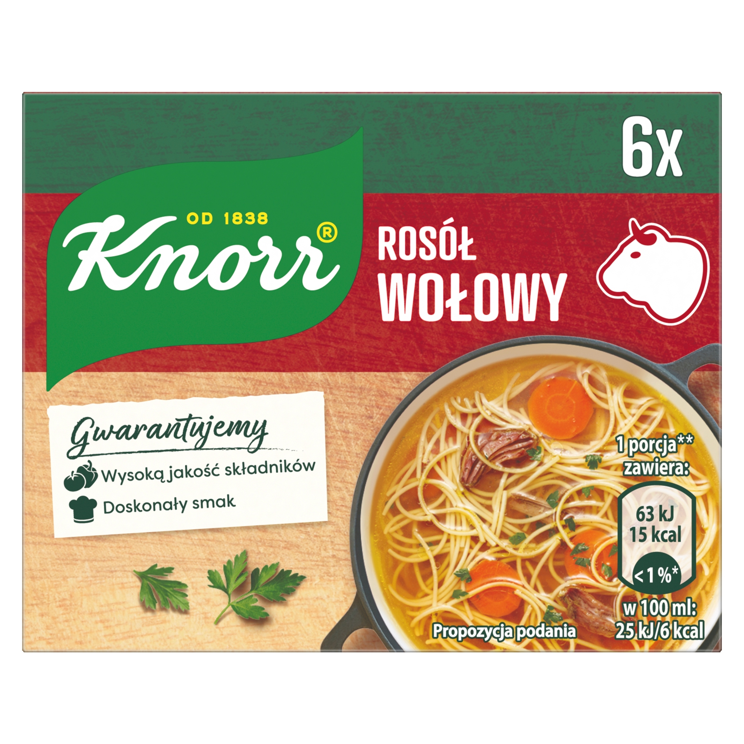 Яловичий бульйон — ідеальне поєднання сушеної петрушки та ароматної куркуми. Кубик додасть бульйону та іншим улюбленим супам глибокий м'ясний смак і зробить їх смак по-справжньому домашнім. Водночас яловичі кубики – перевірений кухарями Knorr спосіб приправити другу страву.