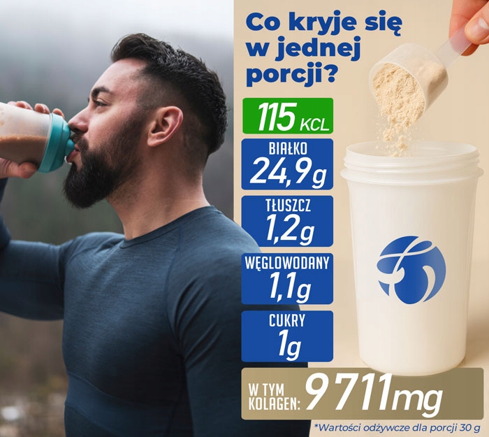 AMIX Premium Protein + Collagen є більш ніж класичним білком. Це інтелектуальна комбінація високоякісної сироваткової білкової концентрату та гідролізованих типів I та III колагену, що підтримує структуру нежирної маси, регенерації суглобів та еластичності шкіри. Це також чудово під час зменшення ваги - як коктейль з низьким вмістом калорії, зручна заміна їжі або підтримка активних жінок, які піклуються про форму, так і зовнішній вигляд. Ви не знайдете дешевих замінників - будь -якого білка соєвого білка, пшениці або маслянистого білка . Ми зосереджуємось на якості, саме тому кожна порція забезпечує стільки, скільки 83% чистого білка, нижче 1% цукру та жиру - без компромісів і без зайвих добавок.