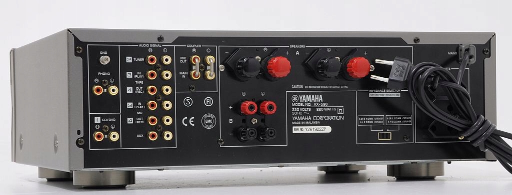 Предметом продажу є підсилювач від виробника, який не потребує представлення. Сама назва бренду - «Ямаха» говорить сама за себе. AX-596 - один з новітніх підсилювачів цього виробника. Висококласний дизайн без компромісів. Візуально обладнання досить вражаюче. Красиво виглядає передня панель з шліфованого алюмінію, а під вишуканою кришкою розташовані рідше використовувані кнопки і ручки. Селектор зміни джерела працює чудово, а світлодіоди над ним доповнюють чудовий візуальний ефект. Дивлячись всередину крізь вузькі «решітки», можна побачити великий трансформатор і незвичайний порядок, характерний для підсилювачів Yamaha - чітко сплановану, симетричну структуру тракту сигналу для обох каналів.