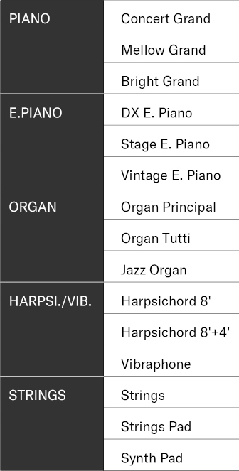 Піаніно має 15 високоякісних вбудованих звуків: