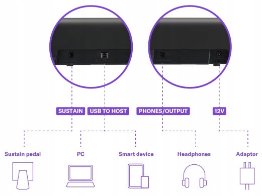 Роз'єм USB TO HOST дозволяє підключатися до комп'ютера або планшета. Ви можете використовувати будь-які навчальні програми.