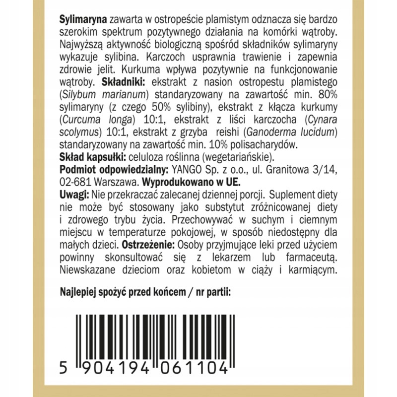 YANGO SILIMARIN 90K ПЕЧІНКА РОЗТОРОПУ