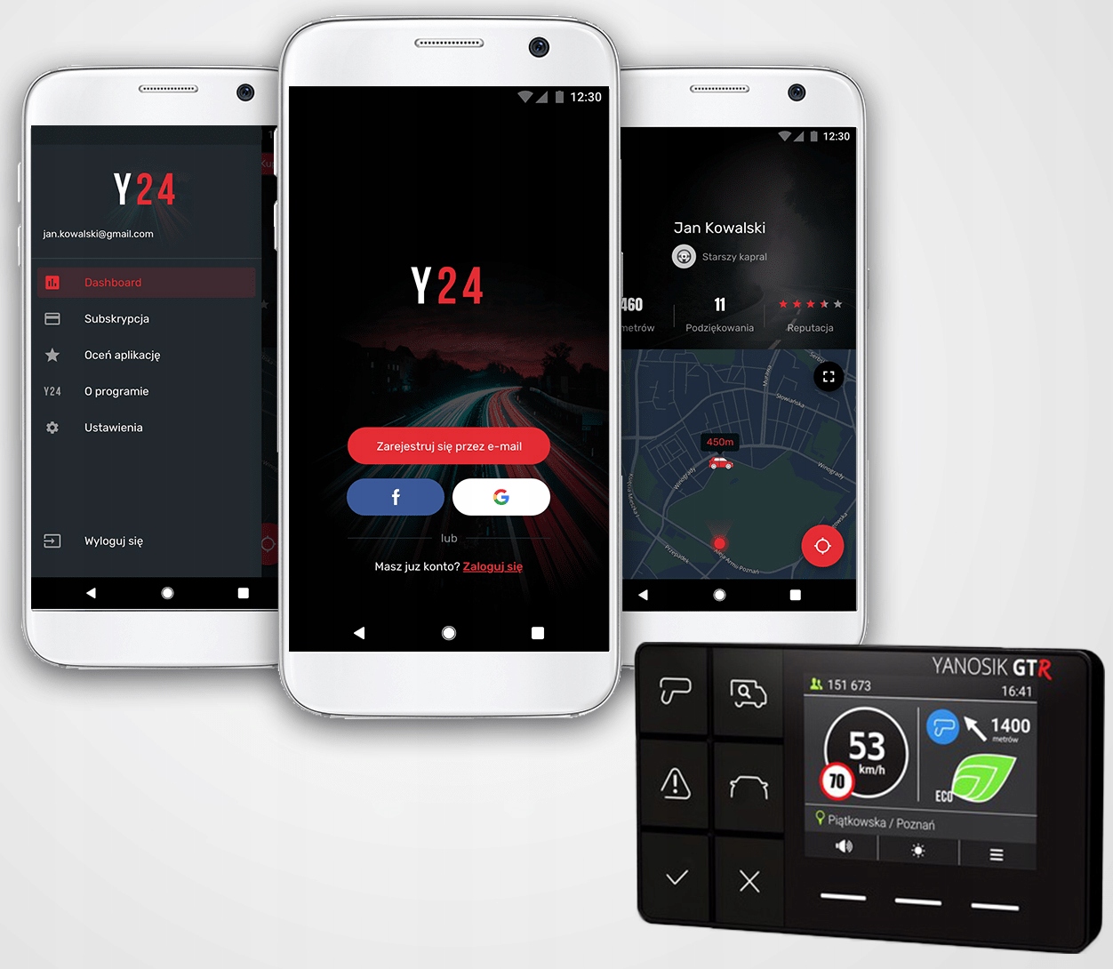 Anti-radar yanosik GTR with a subscription for 60 months for free + integration with the e -oll system h1> with the Yanosik device you gain: h2> - current information on the road: speed cameras, accidents, police controls, road transport inspections and roadside inspections threats,