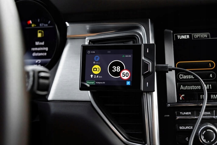 У новій версії ви також знайдете більше інформації - ви не тільки знатимете свою відстань до першої події, але й побачите, як далеко до наступної. Керування новим дисплеєм у Yanosik RS — це суцільне задоволення.
