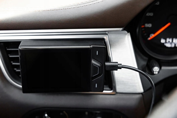Задня частина корпусу покрита ніжною текстурою, що надає пристрою оригінальний, дизайнерський вигляд. Завдяки простій геометричній формі та невеликим розмірам Yanosik RS ідеально впишеться в салон вашого автомобіля, незалежно від того, шкіряна оббивка у вас чи сидіння з алькантари.