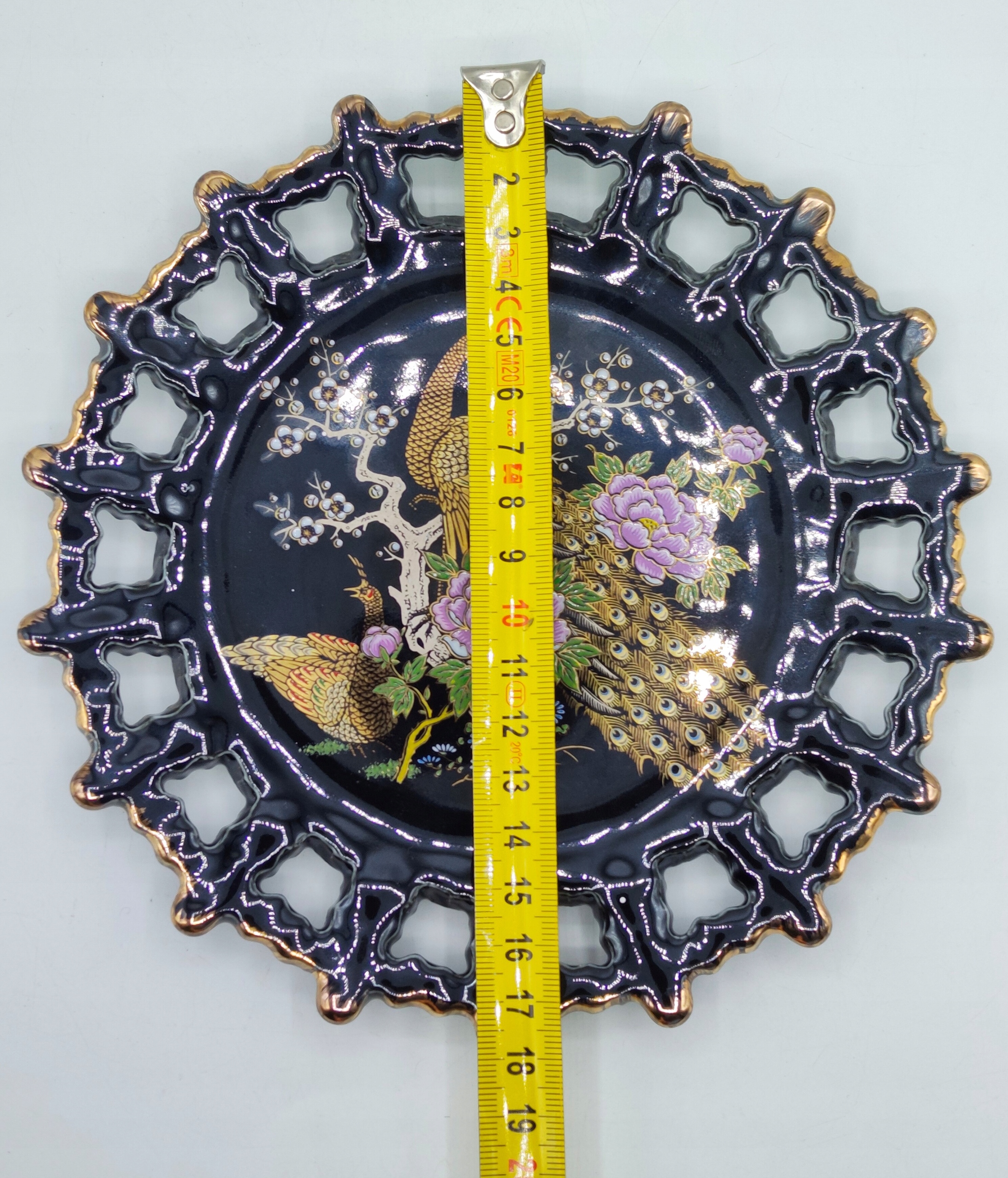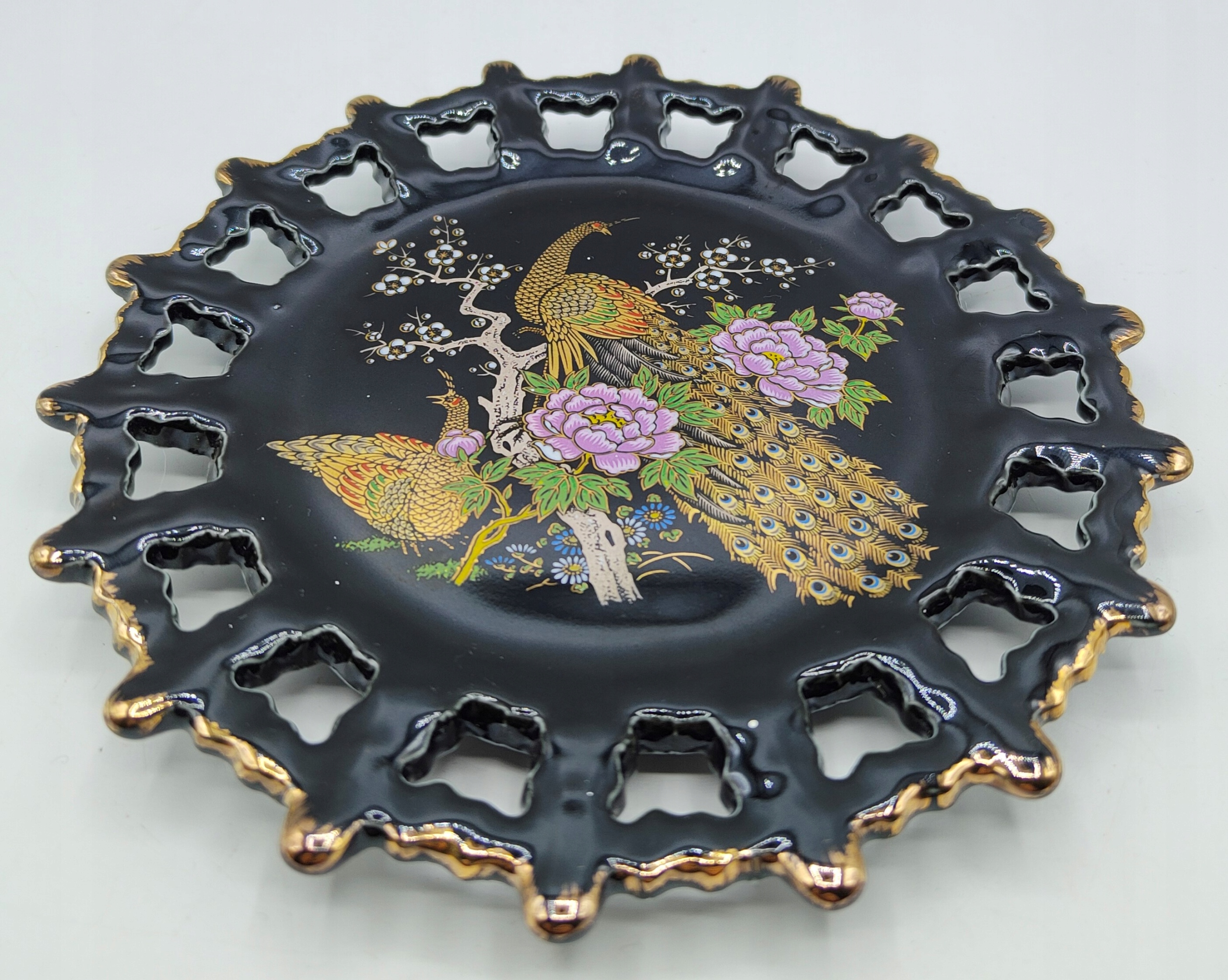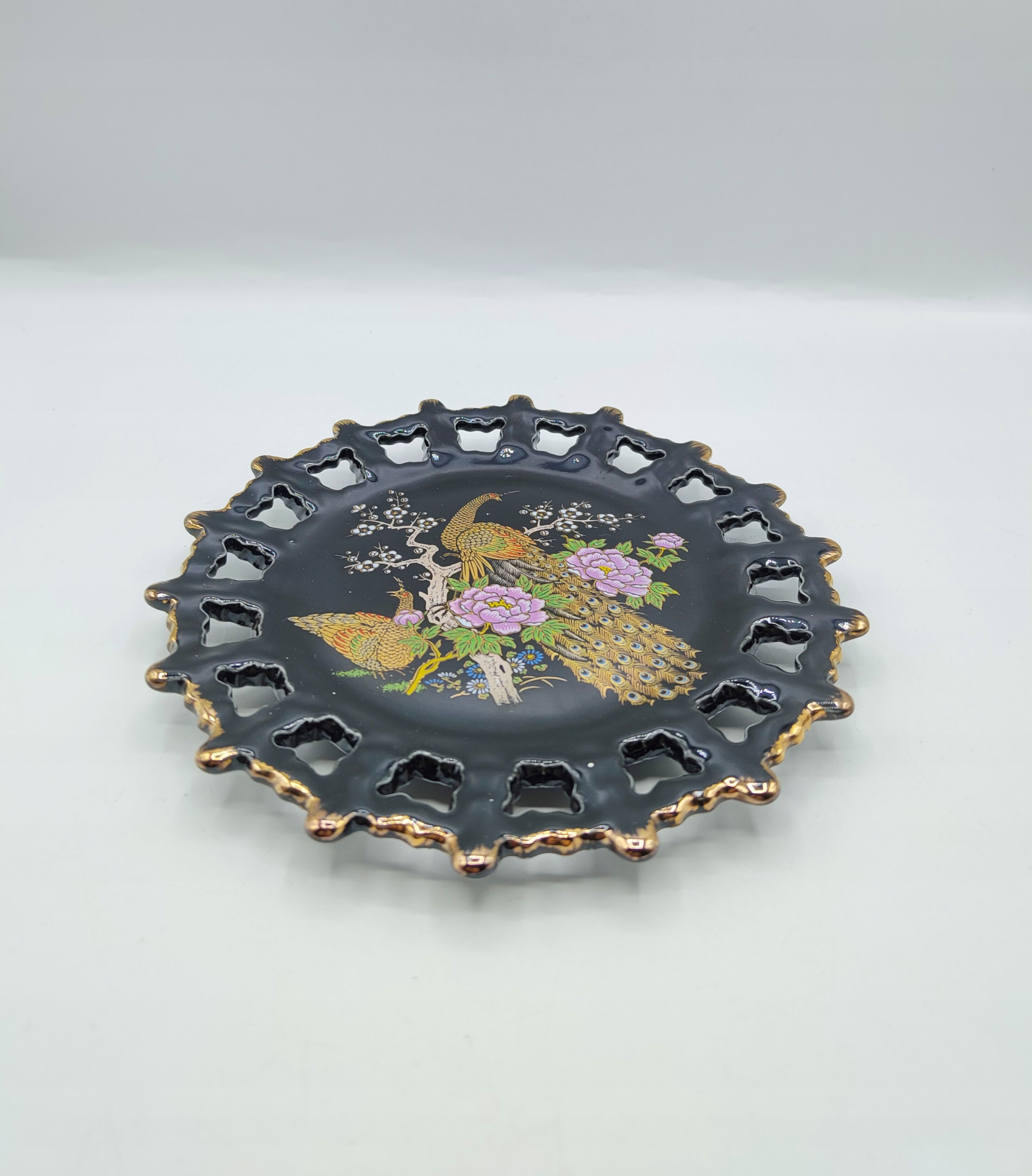 Вінтажна красива сувенірна ажурна тарілка ЯПОНІЯ павичі - діаметр 18см.