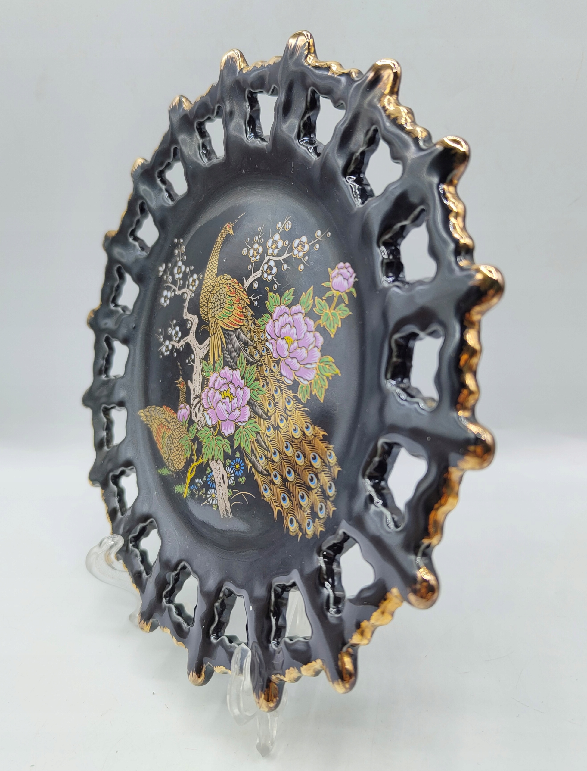 ЯПОНІЯ Вінтажна красива ажурна тарілка павич