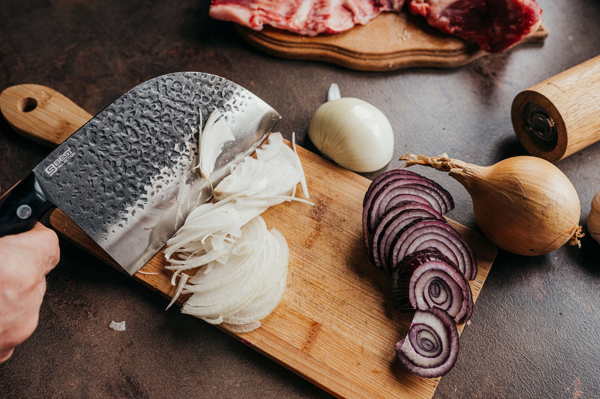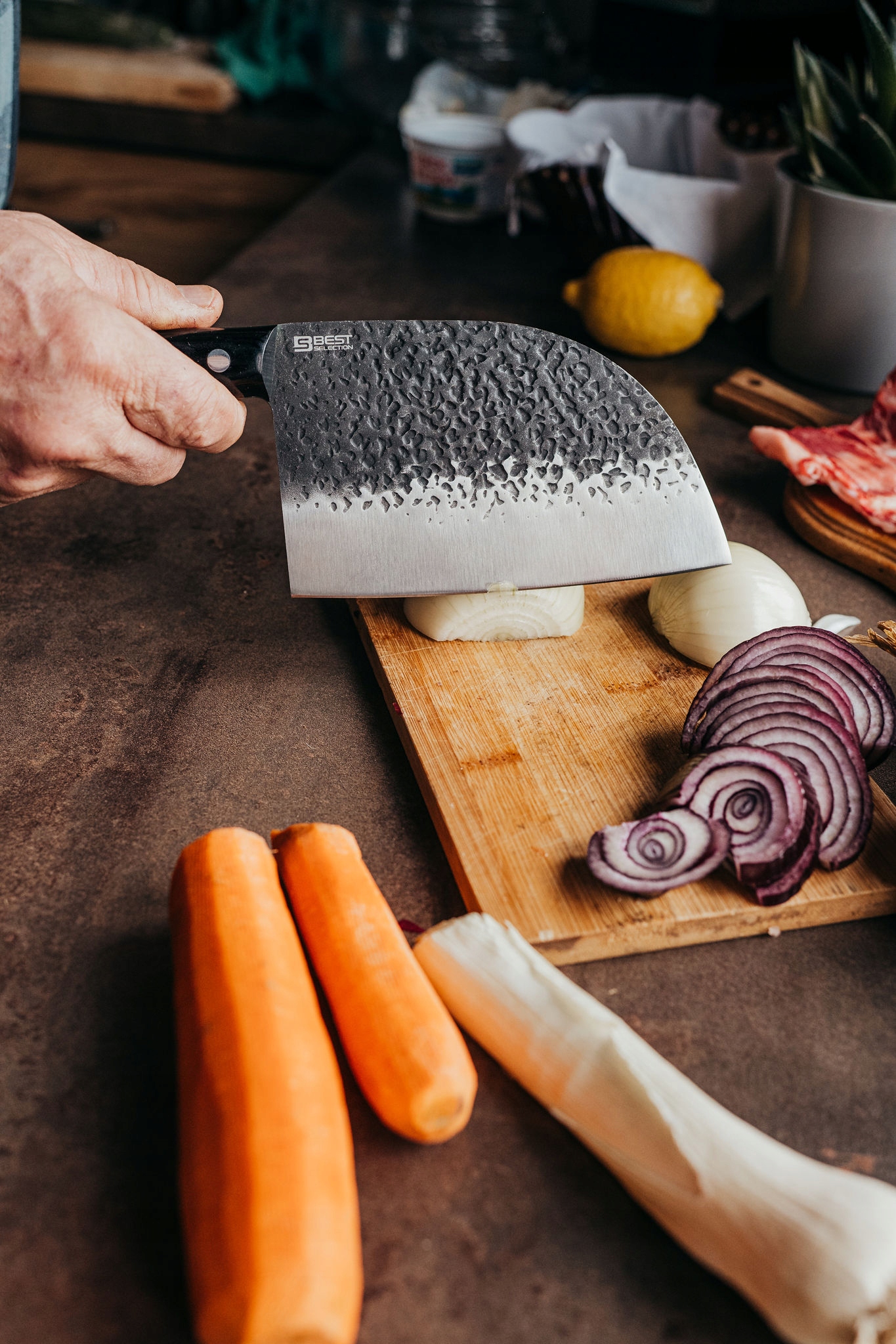 Для виробництва тесака, який належить до групи вибраних продуктів BestSelection, використовувалися нержавіюча сталь і, що важливо, тверда деревина. Що це дає? Перш за все, довговічністю цього засобу. Ви любите багато часу проводити на кухні, готуючи різні страви? Це безперечно змушує вас нарізати багато продуктів. Часто домашні ножі працюють у нас не так, як хотілося б. За допомогою запропонованого тесака ви можете вирішити цю проблему. Це ніж, який прослужить багато років і витримає щоденні вимоги. Використовуйте його щодня - навіть інтенсивне використання не зашкодить йому. Різати жорстке м'ясо тварин? Це вже не проблема! Ні про які тріщини в тесаку мова не йде. Крім того, відсутність сучків і плям означає, що ніж завжди виглядатиме фантастично на кухонному столі..