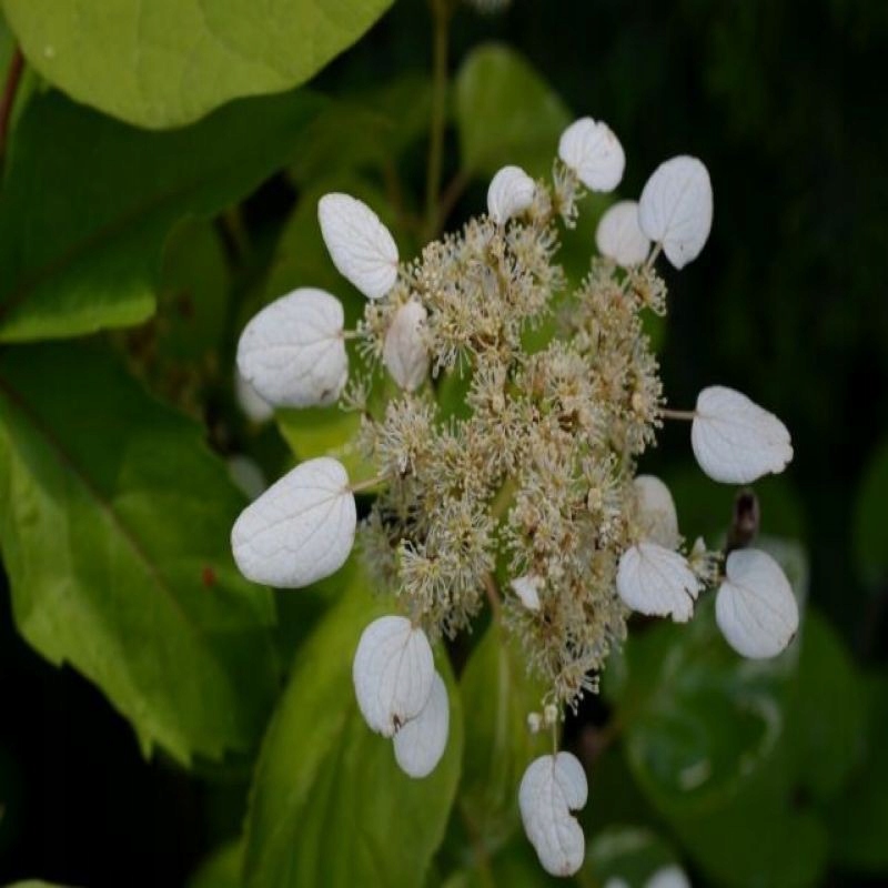 Привабливий альпініст із середовищем. 6-12 см. Серце -укладене, темно -зелене листя влітку, а жовте восени. Кремові білі квіти, ароматні з медом, злегка перевантаження. Великі суцвіття 25 см. Він цвіте в червні та липня через 2-3 роки після посадки. Він росте до 6 метрів у висоту, щорічно росте 0,5 м. Він віддає перевагу кислим, гумусам, трохи вологим ґрунтам, але він не любить затоплення. Потрібні напівпрограмні та тінисті позиції. Він ідеально підходить для посадки перголи, стін, а також ґрунтового покриву. Мороз -резистентний.