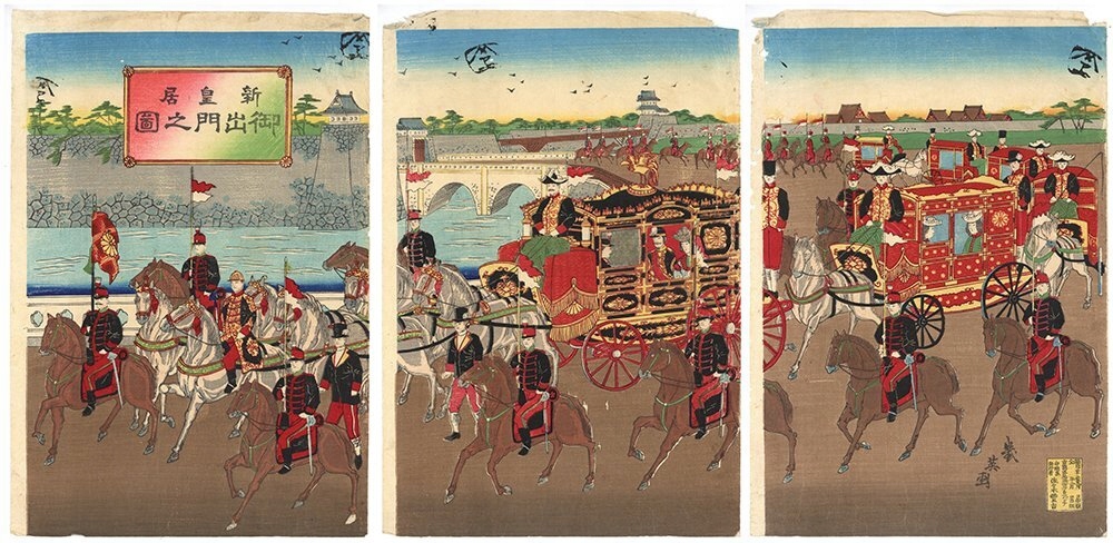 Японська ксилография, Новий палац у Токіо, Кобаясі Ікухіде, триптих, 1893 р.