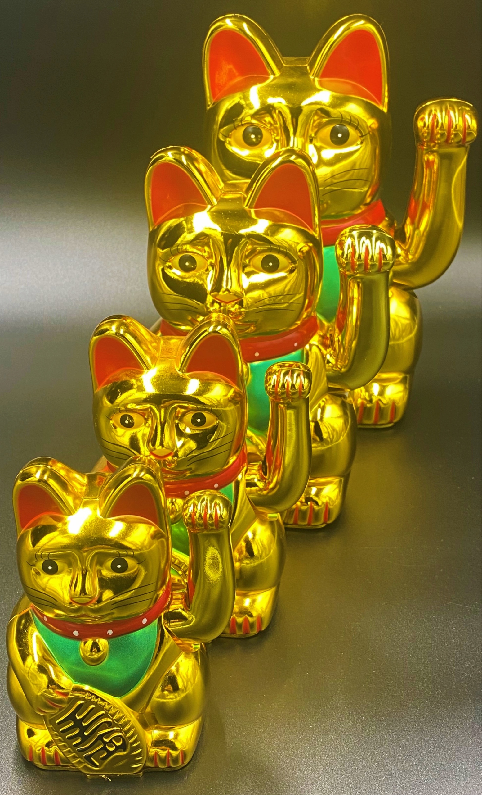 На щастя, у правій лапі китайського кота є стара японська монета. Характерною рисою кожного кота цього типу є ліва лапа, яка скликає добрі душі до господаря додому чи на роботу.