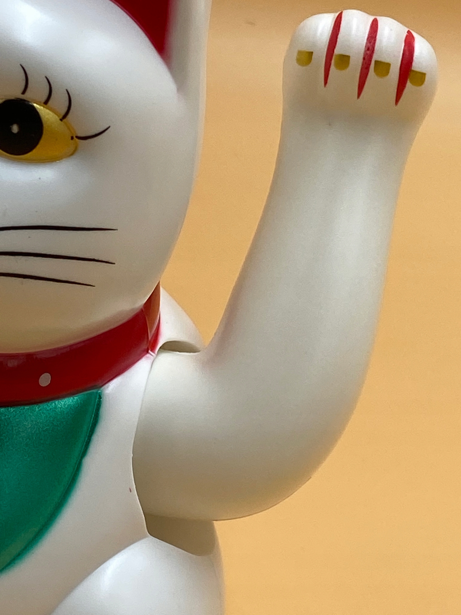 На щастя, у правій лапі китайського кота є стара японська монета. Характерною рисою кожного кота цього типу є ліва лапа, яка скликає добрі душі до господаря додому чи на роботу.