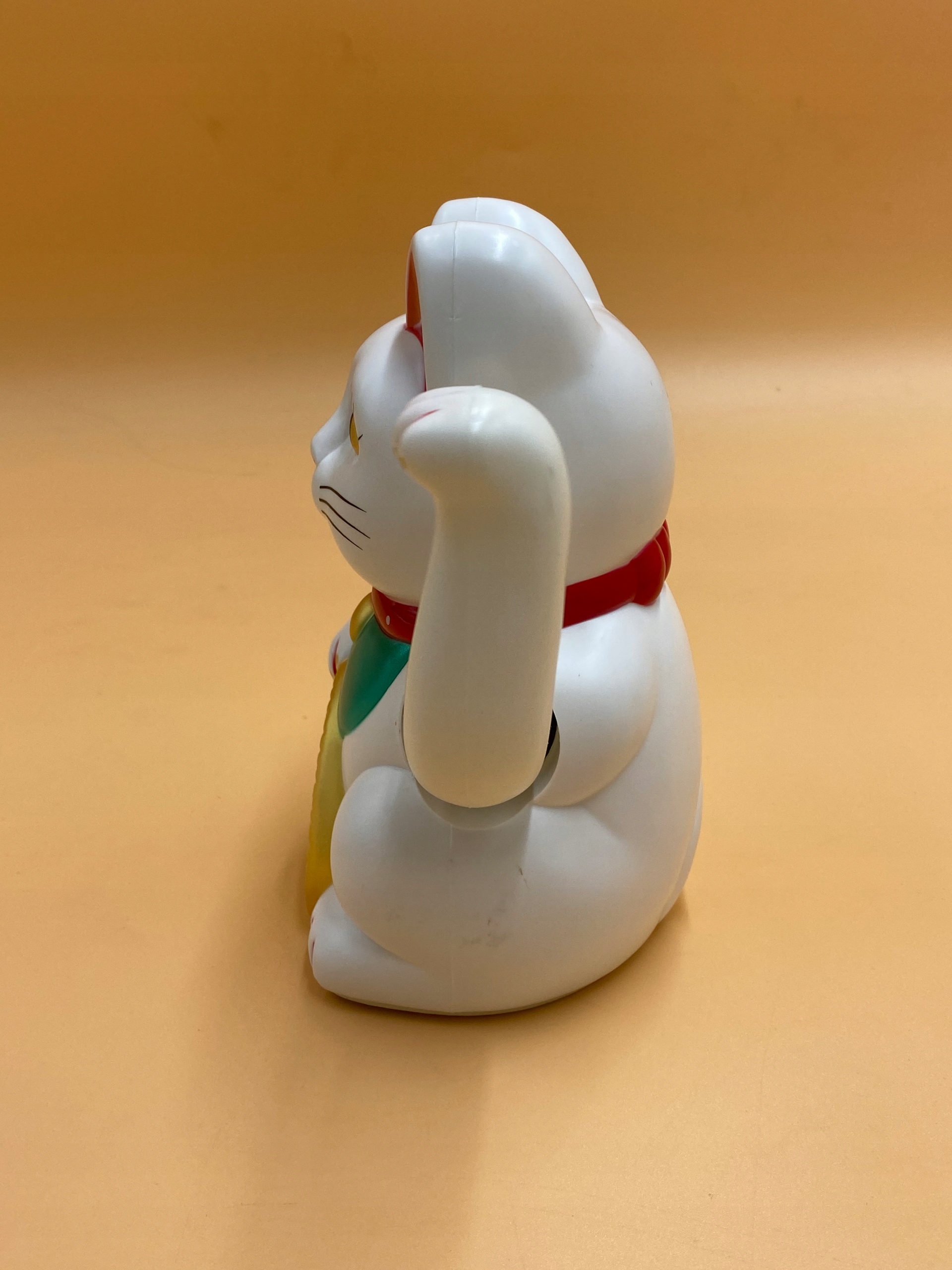 На щастя, ліва лапа Манекі-неко рухома (живиться від 1 батарейки АА). Кошеня махає рукою вгору-вниз, заохочуючи людину з чистим і добрим серцем і бажанням увійти.