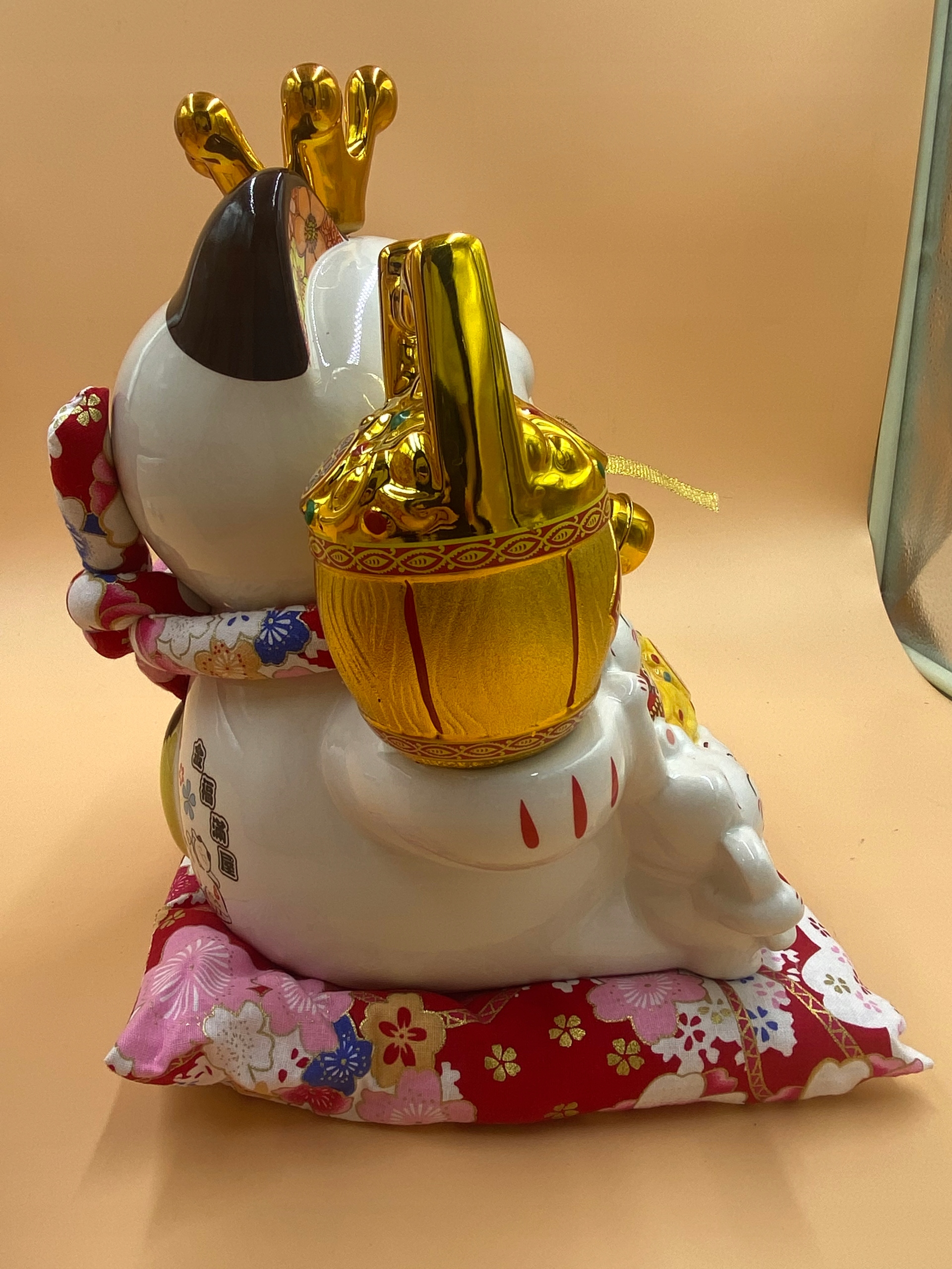 КОШАТА СІМ'Я ЩАСТЯ - крім кота Манекі Неко є також п'ять додаткових кошенят символізують щастя - всі вони охороняють мішечок із золотими монетами, вони тримають лапки на щастя, а крім того, троє кошенят тримають сценарій з китайськими ієрогліфами на щастя, а в правій руці кошеня тримає бочку, повну золотих монет.
