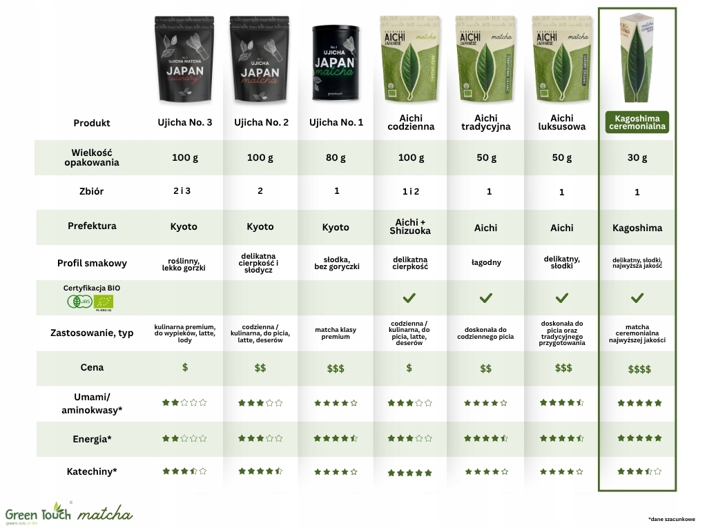 найвищого класу церемоніального матчу з півдня від Японії - інтенсивність кольору, смак та чистоту Umami на головному рівні.