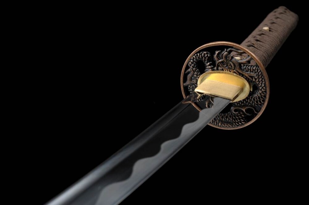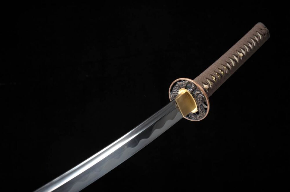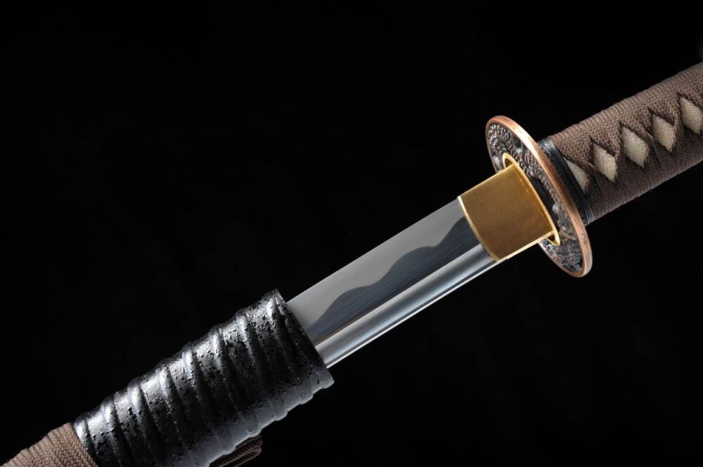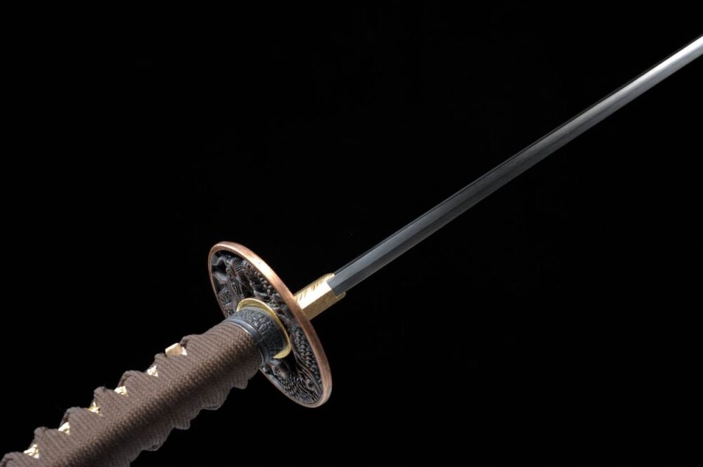 Ця катана була виготовлена в невеликій кузні, використовуючи лише традиційні репродуктивні методи та оригінальні матеріали. Ручка складається з двох шматочків твердої деревини японської магнолії, приклеєної рисовим клеєм та шкіряними променями. Він має кільце під назвою Фучі з боку ручки, а комір, що покриває лезо в основі ручки під назвою Хабак. Tsuba - ручка диска, виготовлена з кольорових металів, рясно оформлена. Зігнуте лезо, вирізане з 1060 сталь ковальськими, використовуючи методи, що передаються з покоління до покоління.