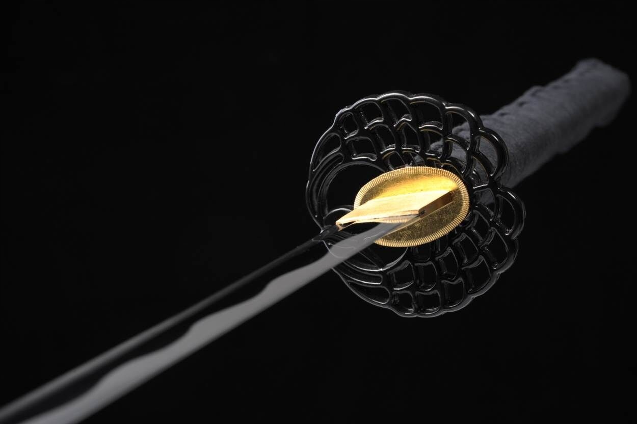 Ця катана була виготовлена в невеликій кузні з використанням лише традиційних технологій виготовлення зброї та оригінальних матеріалів. Ручка складається з двох шматків твердого дерева японської магнолії, склеєних між собою рисовим клеєм і покритих шкірою ската. Він має кільце під назвою «фучі» на стороні ручки та комір, який охоплює лезо біля основи руків’я, який називається «хабак». Цуба – ручка диска з кольорових металів, багато декорована. Вигнуте лезо, викуване ковалями зі сталі 1060 за допомогою техніки, що передається з покоління в покоління.