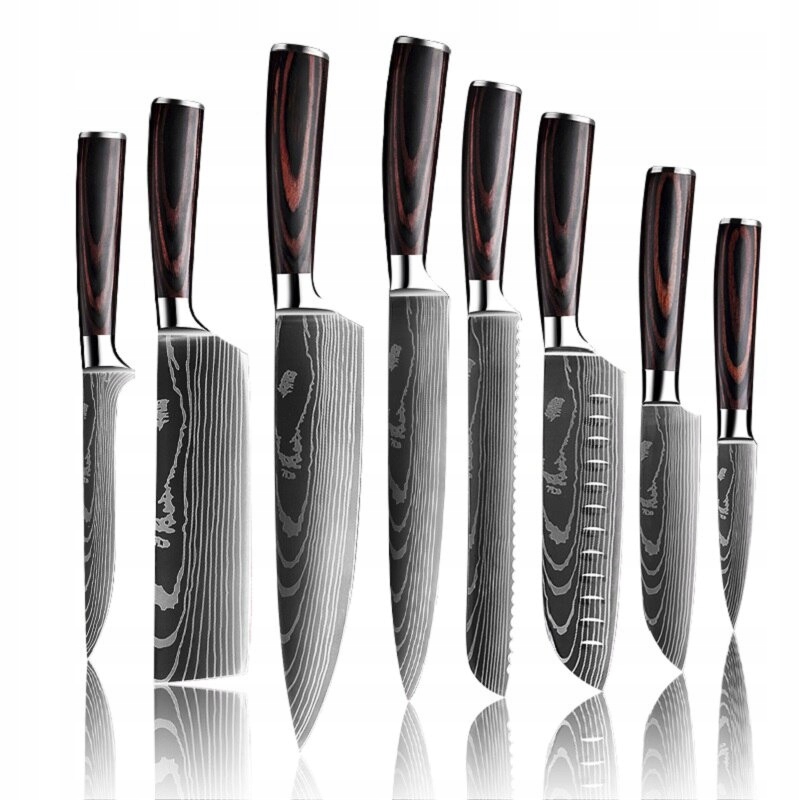 НАБІР ЯПОНСЬКИХ НОЖІВ ДАМАСЬКА СТАЛЬ 8 шт