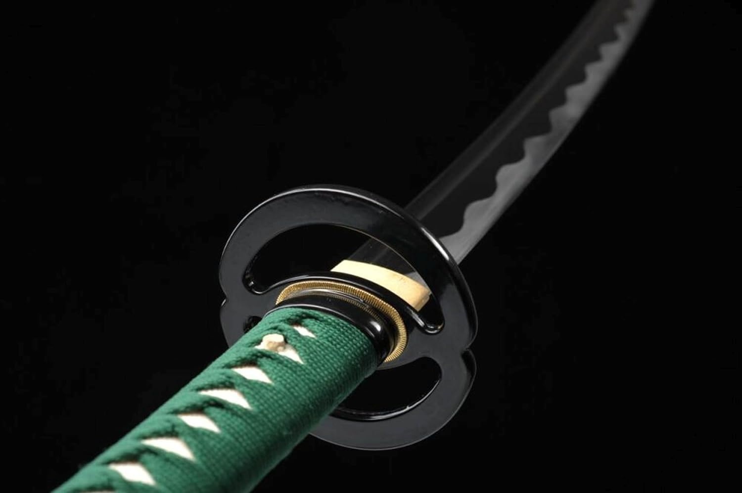 Ця катана була виготовлена в невеликій кузні за допомогою лише традиційні техніки виготовлення зброї та оригінальні матеріали. Ручка складається з двох шматків твердого дерева японської магнолії, склеєних між собою рисовим клеєм і покритих шкірою ската. Він має кільце під назвою «фучі» на стороні ручки та комір, який охоплює лезо біля основи руків’я, який називається «хабак». Цуба – ручка диска з кольорових металів, багато декорована. Вигнутий клинок, викуваний ковалями зі сталі 1060, використовуючи технології, що передаються з покоління в покоління.