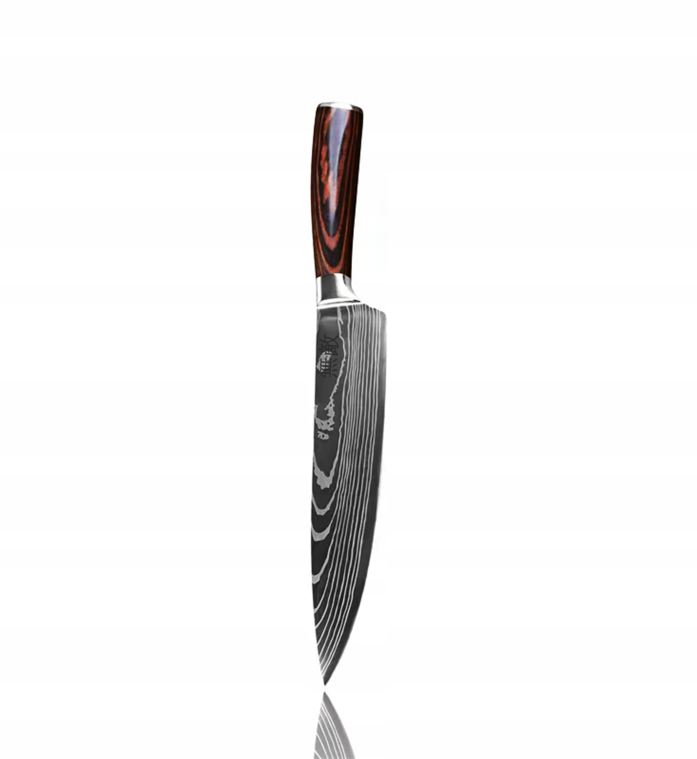 ✅ Елегантний і сучасний дизайн - японські ножі поєднується з класичним стилем і сучасною кухнею. Привабливість японських ножів підтверджує той факт, що їх часто колекціонують любителі. Візерунокв стилі Дамаск в лазерній техніці, нагадує річні кільця - міцний і не тьмяніє.