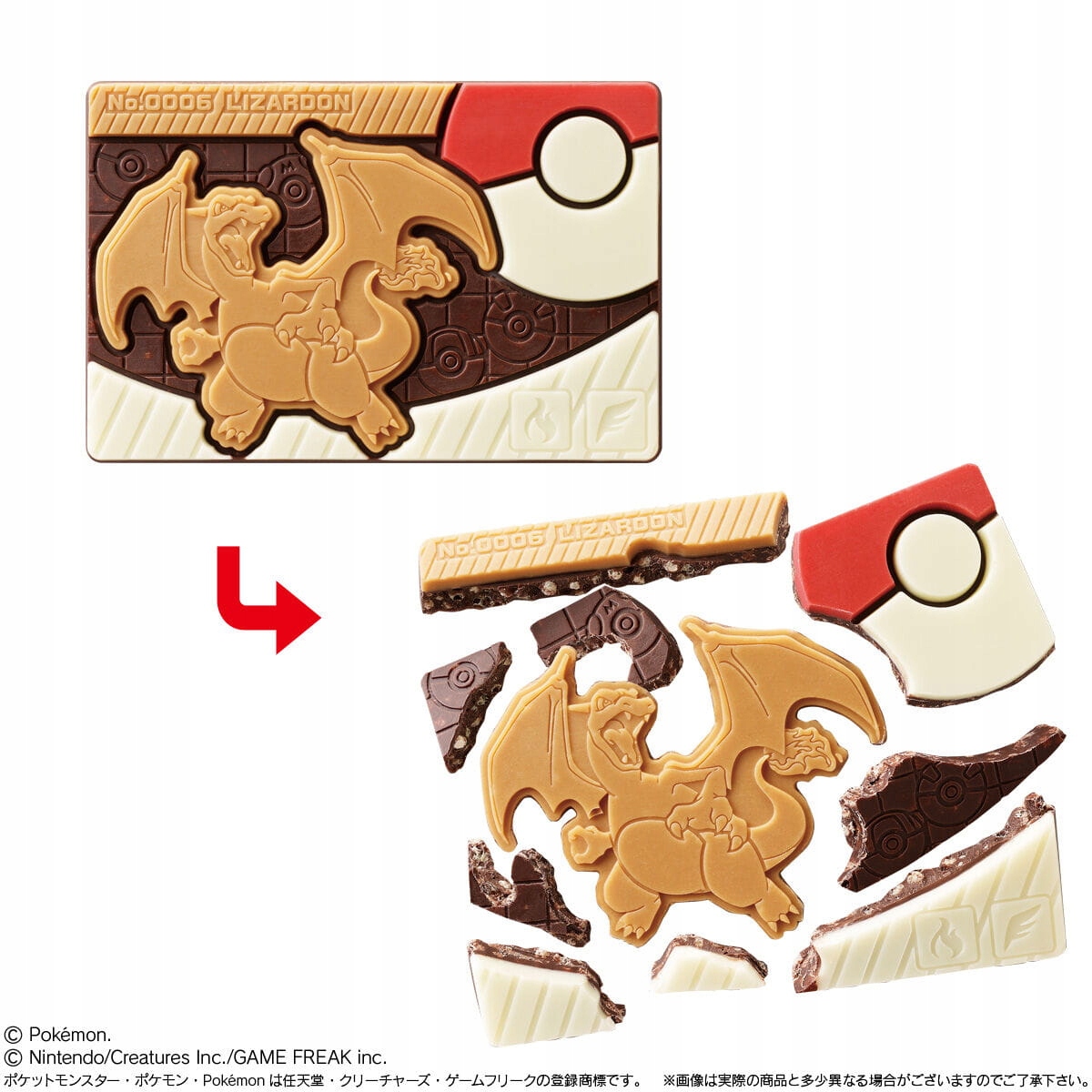 Кожна плитка складається з кольорових шоколадних елементів із 4 різними смаками: карамель, полуниця, білий шоколад і молочний шоколад із листковим рисом. Посередині ви знайдете одного з 8 покемонів: