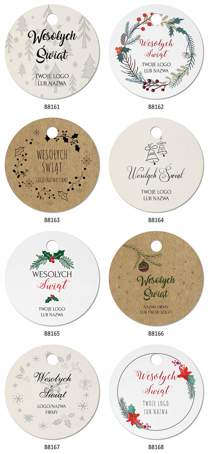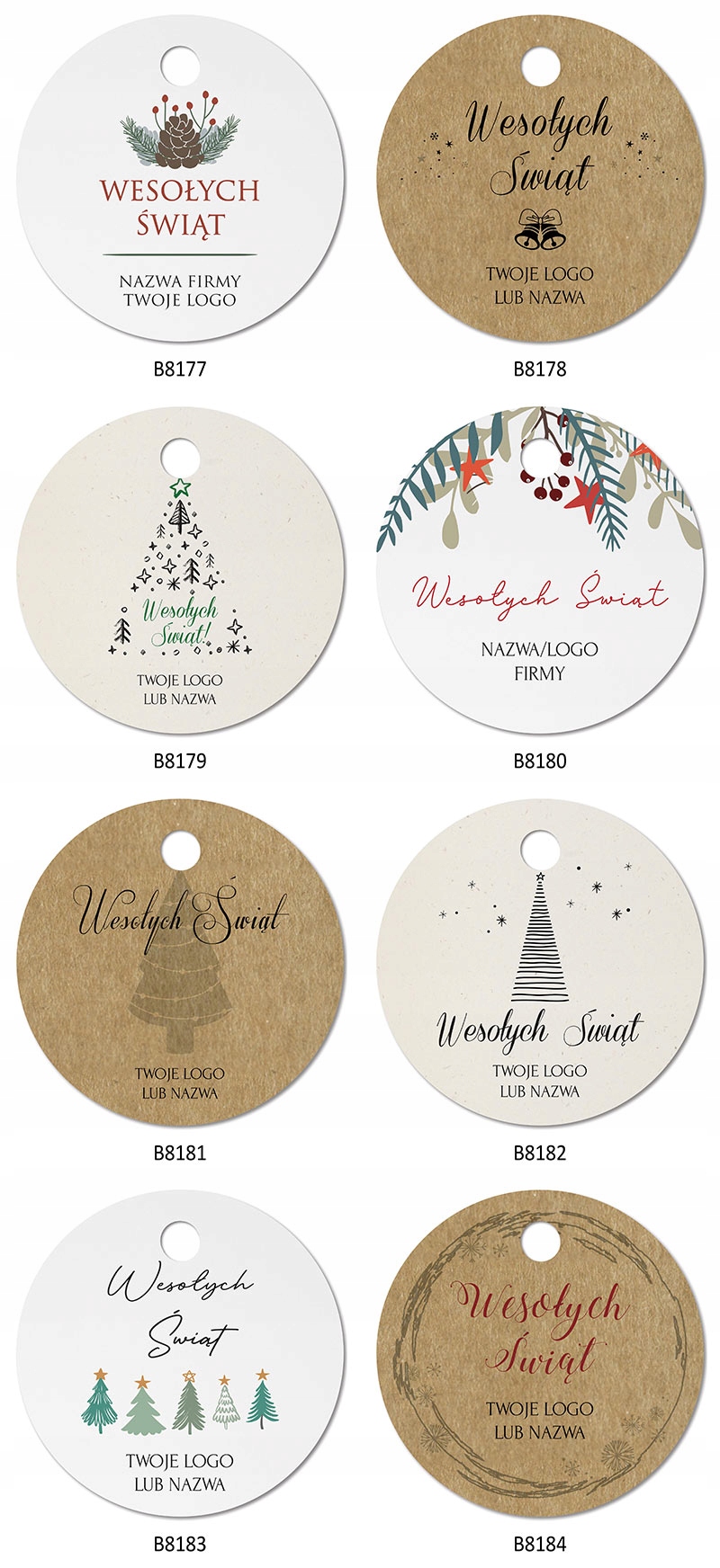 - Можна замовити етикетки з будь-яким розміром отвору від 3 мм або без отвору. Клієнти замовляють менші отвори, якщо вони прикріплюють етикетки за допомогою машини для етикеток, більші отвори, якщо вони підвішують їх на шнурку.