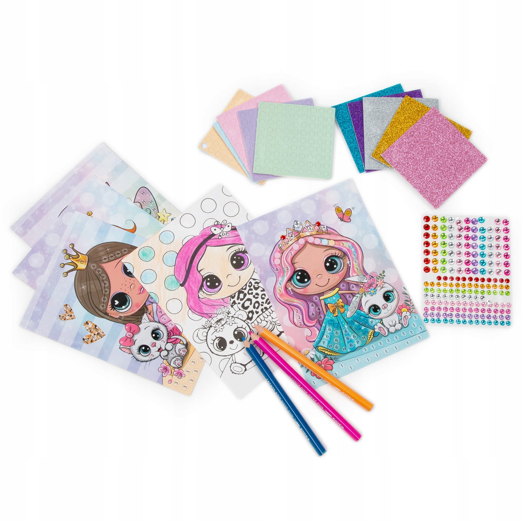 Прикрашаючи мозаїку 10 кольоровими та блискучими пінопластовими наклейками та діамантами, які входять у комплект, ви можете створювати справжні твори ст. Після декорування просто переверніть аркуш і займайтеся творчістю, розфарбовуючи незвичайні розмальовки.