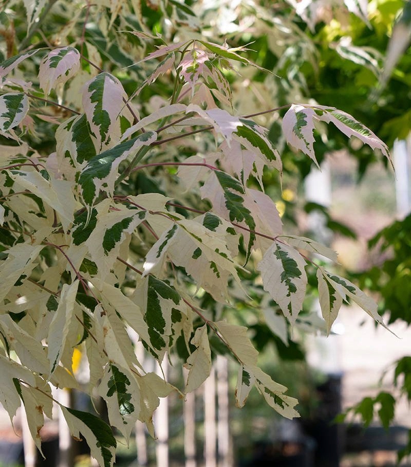 Походження: Північна Америка - селекційний сорт Максимальна висота: 15-20 м Вирізати: дерево з широкою, неправильною кроною, яка розташована на звичайно низькому, кривому стовбурі Структура листя: непарноперисті, що складаються з 3-7 густозазубрених або злегка заглиблених листочків; листя довго загострене на довгих тонких черешках; зверху голі, знизу іноді волохаті Розмір листа: верхній лист до 10 см завдовжки і 6 см завширшки. Літній колір листя: облямовані білі, молоді прирости рожеві Кора: сіро-коричневий, гладкий; тріщини на старих стовбурах Морозостійкість: повністю морозостійкий Зони морозостійкості: 4 характеристика: листя з білими краями, молоді прирости чітко рожеві