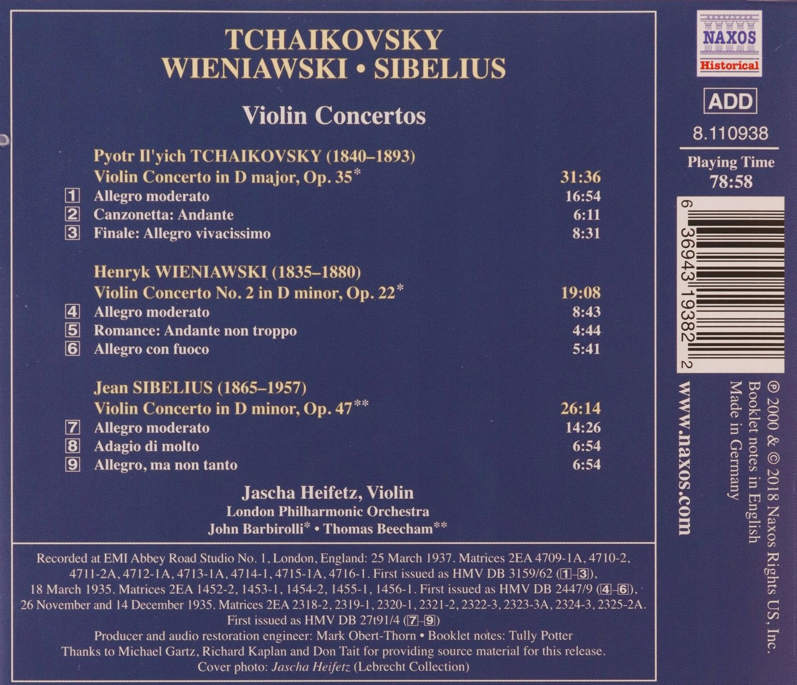 ЯША ХЕЙФЕЦ: СКРИПКОВІ КОНЦЕРТИ ЧАЙКОВСЬКОГО [CD]