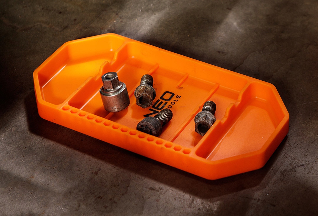 Він характеризується розмірами 27,5 x 14,5 x 25 см і глибиною 20 мм, що запобігає падінню інструментів.